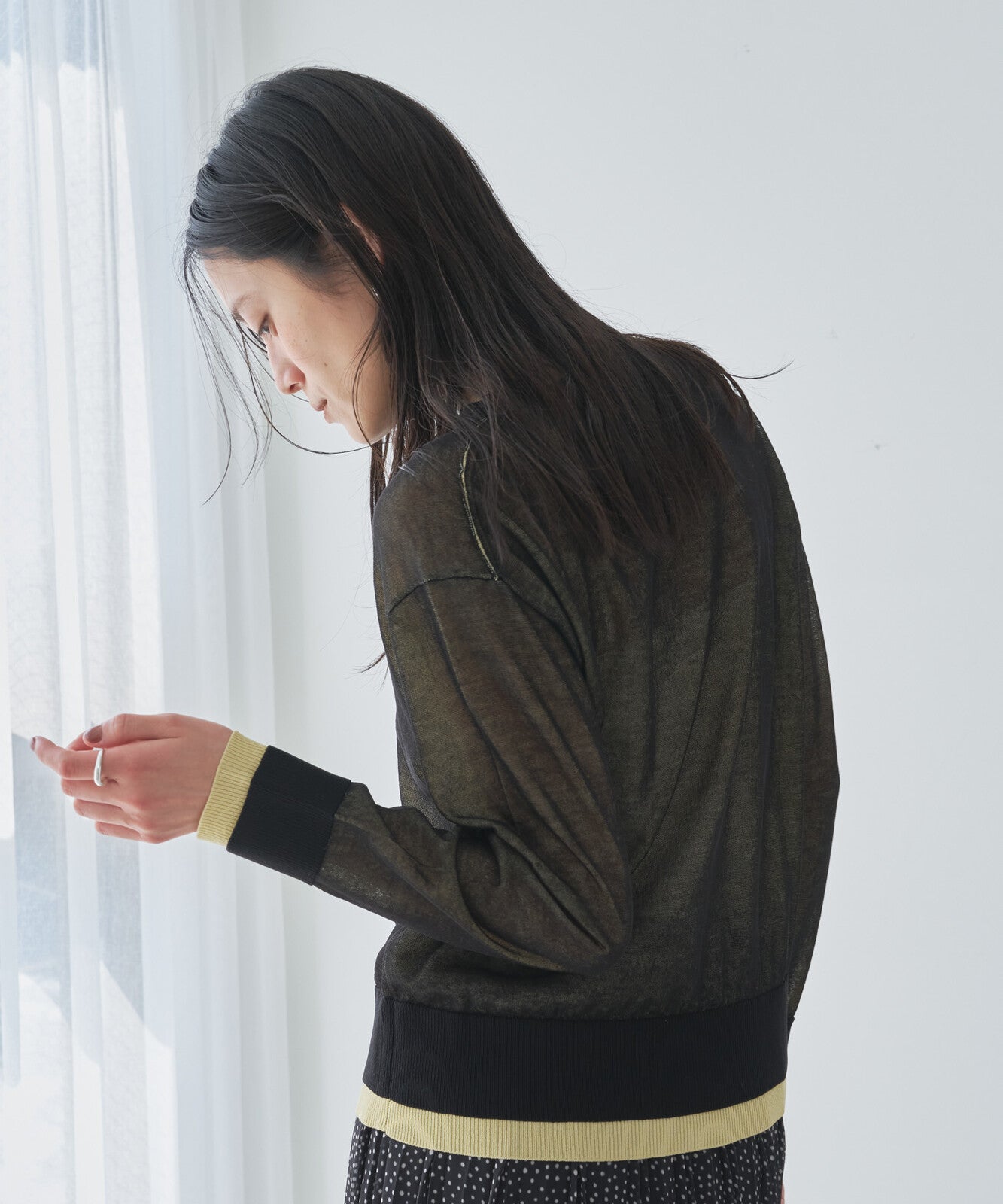 繭型微喇叭透膚裙 - 黑|Lallia Mu 日本製