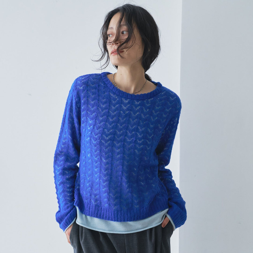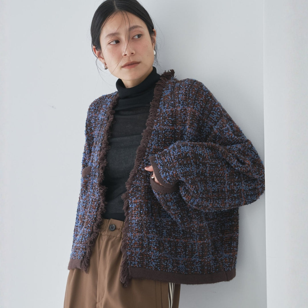 2WAY雙色細麻花針織上衣 - 灰|cloenc