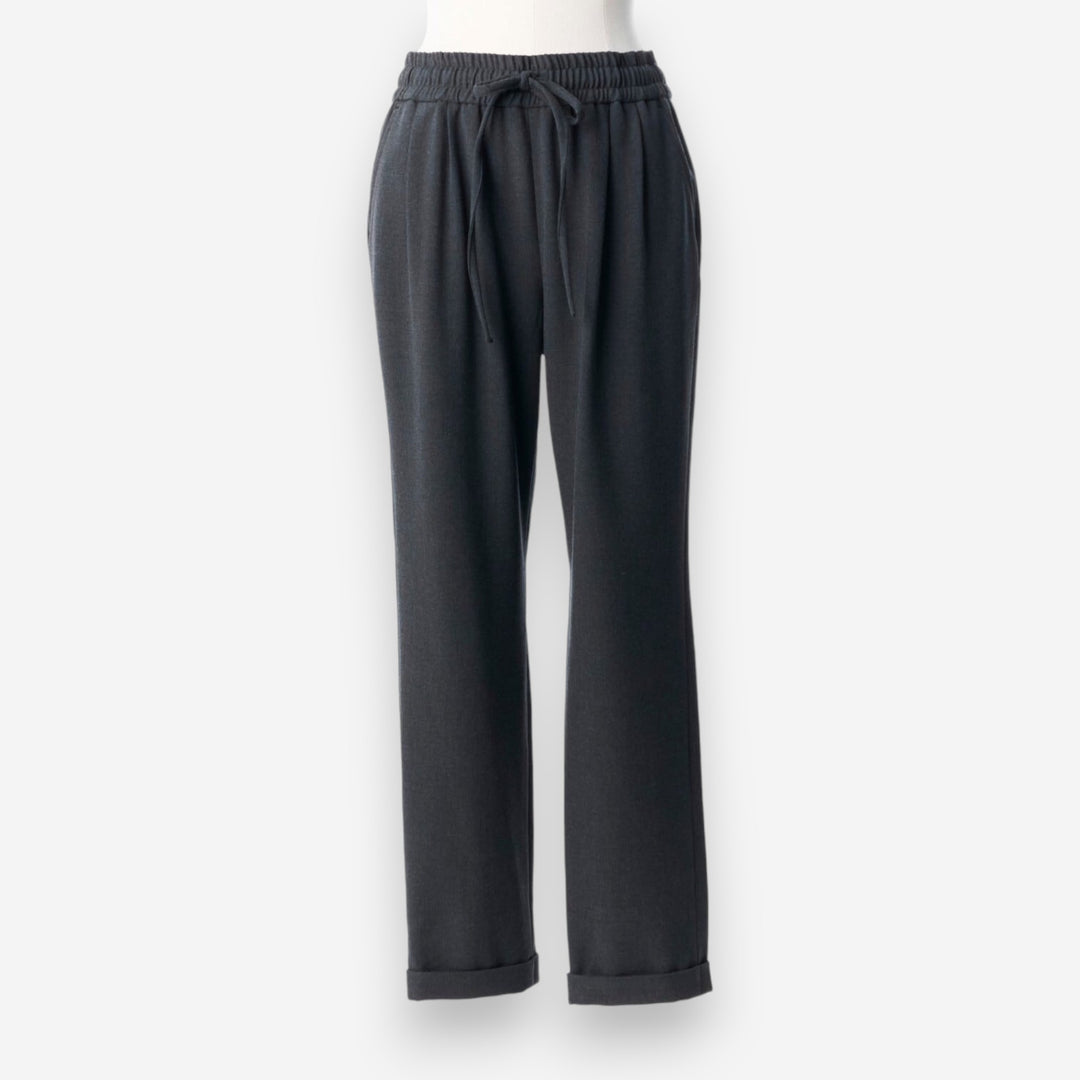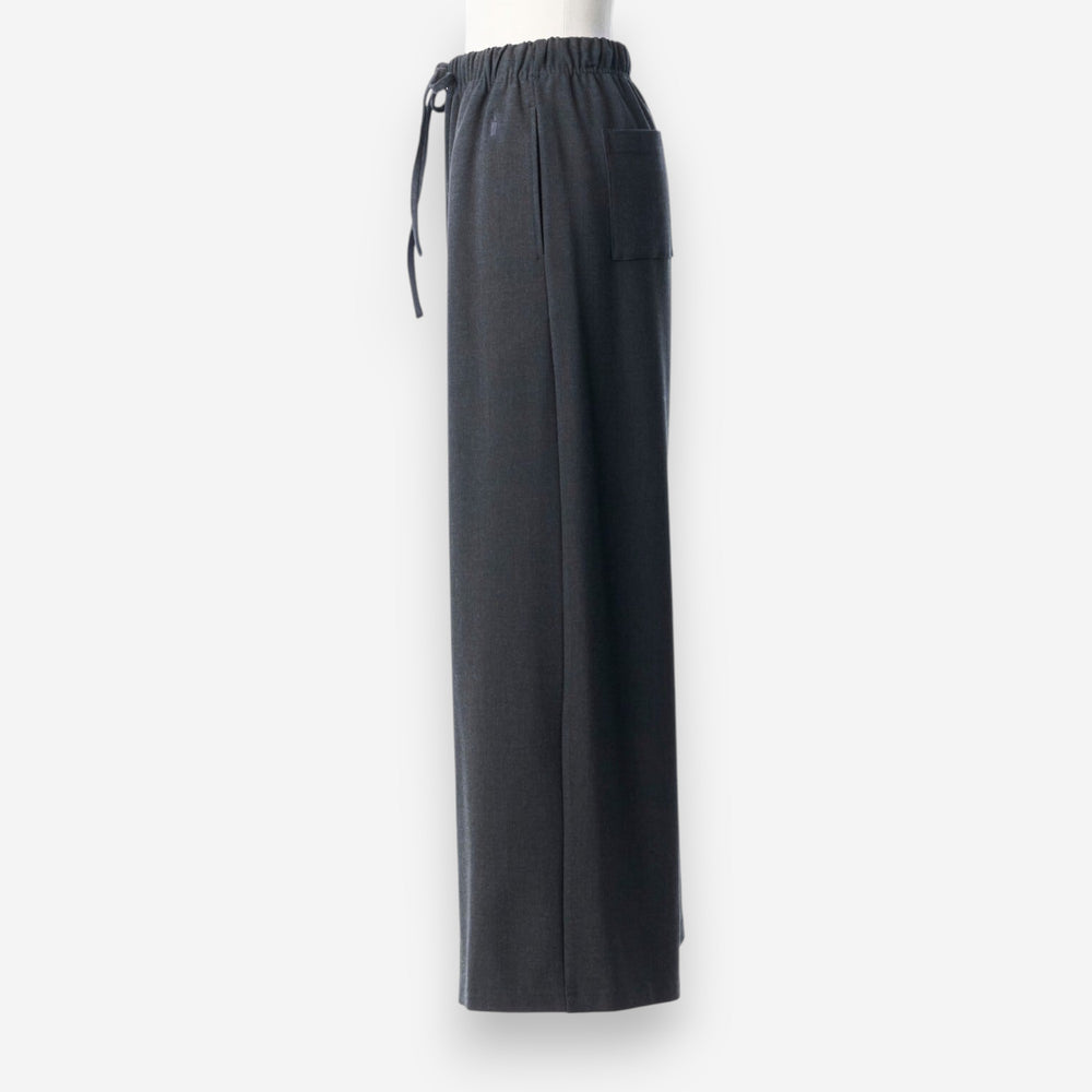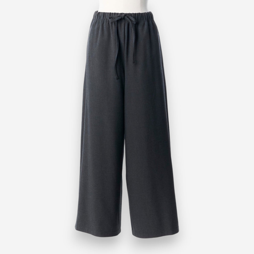 腰部抽皺舒適寬褲 - 灰|IKITSUKE 日本製