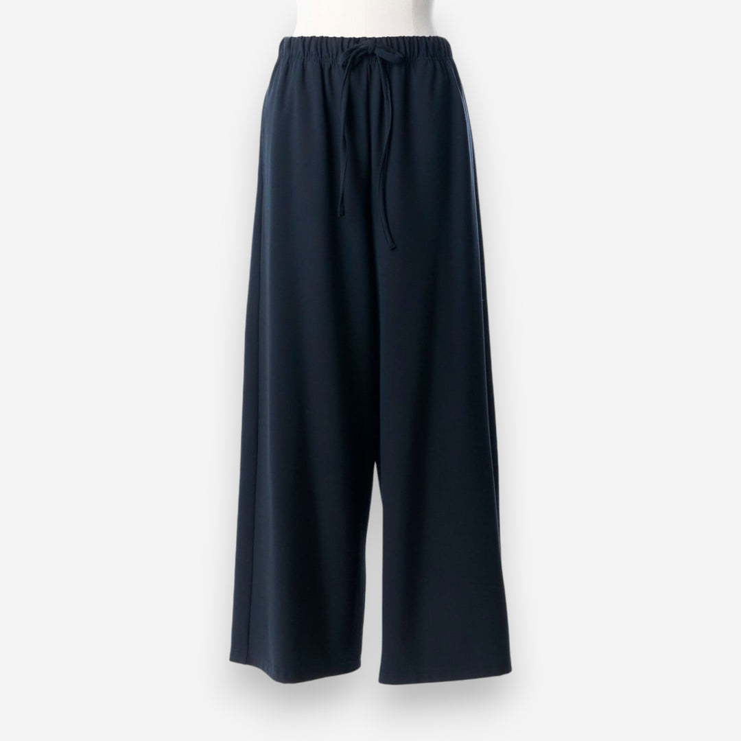 腰部抽皺舒適寬褲 - 深藍|IKITSUKE 日本製