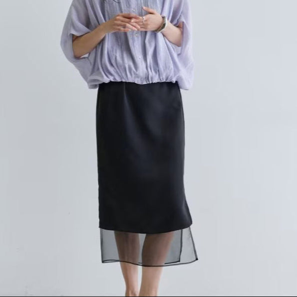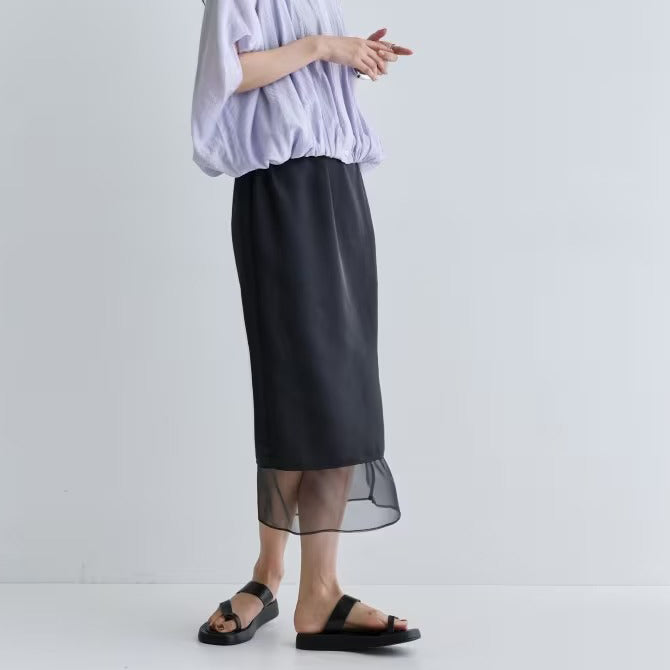 歐根紗光澤層次長裙 - 黑|GALLEST
