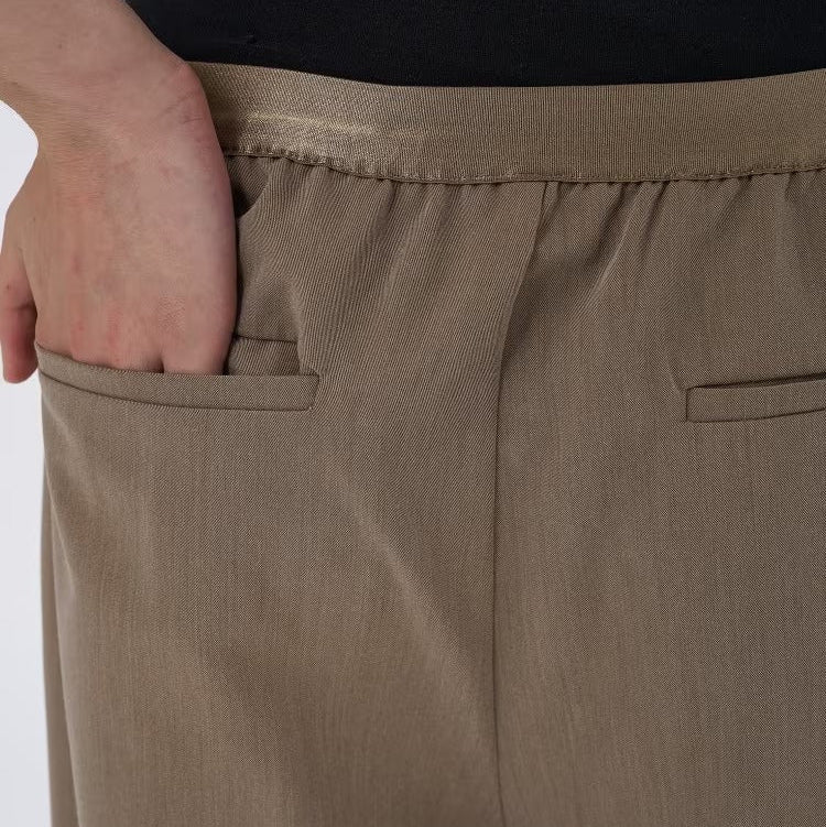 全鬆緊腰配平滑霧面彈帶,兼顧好穿與俐落外觀。