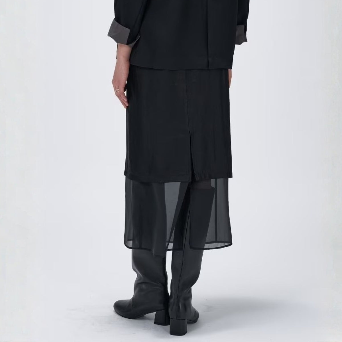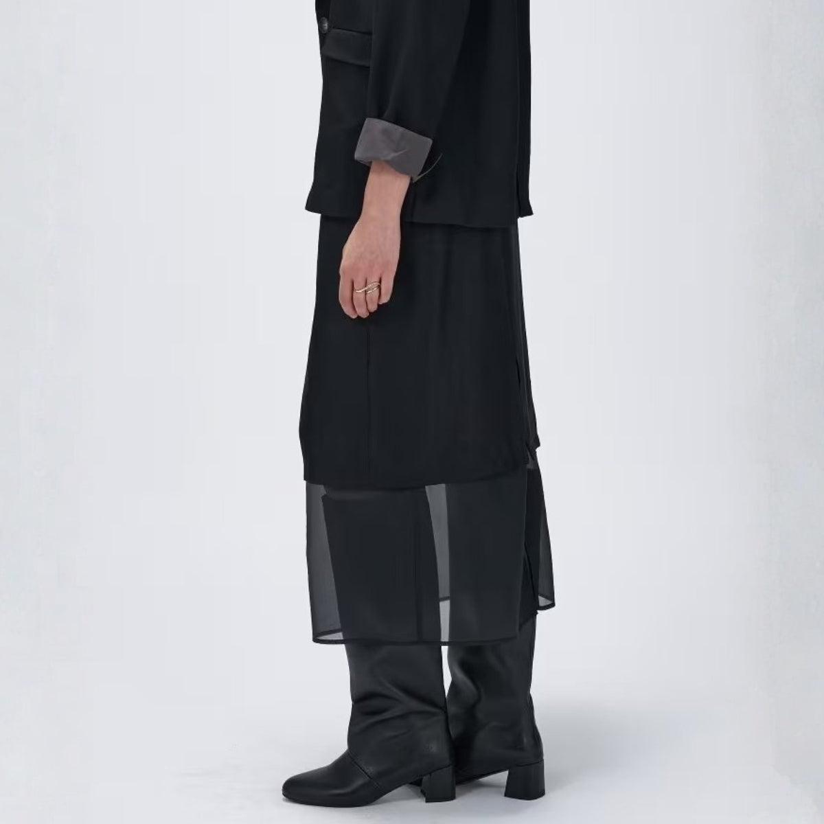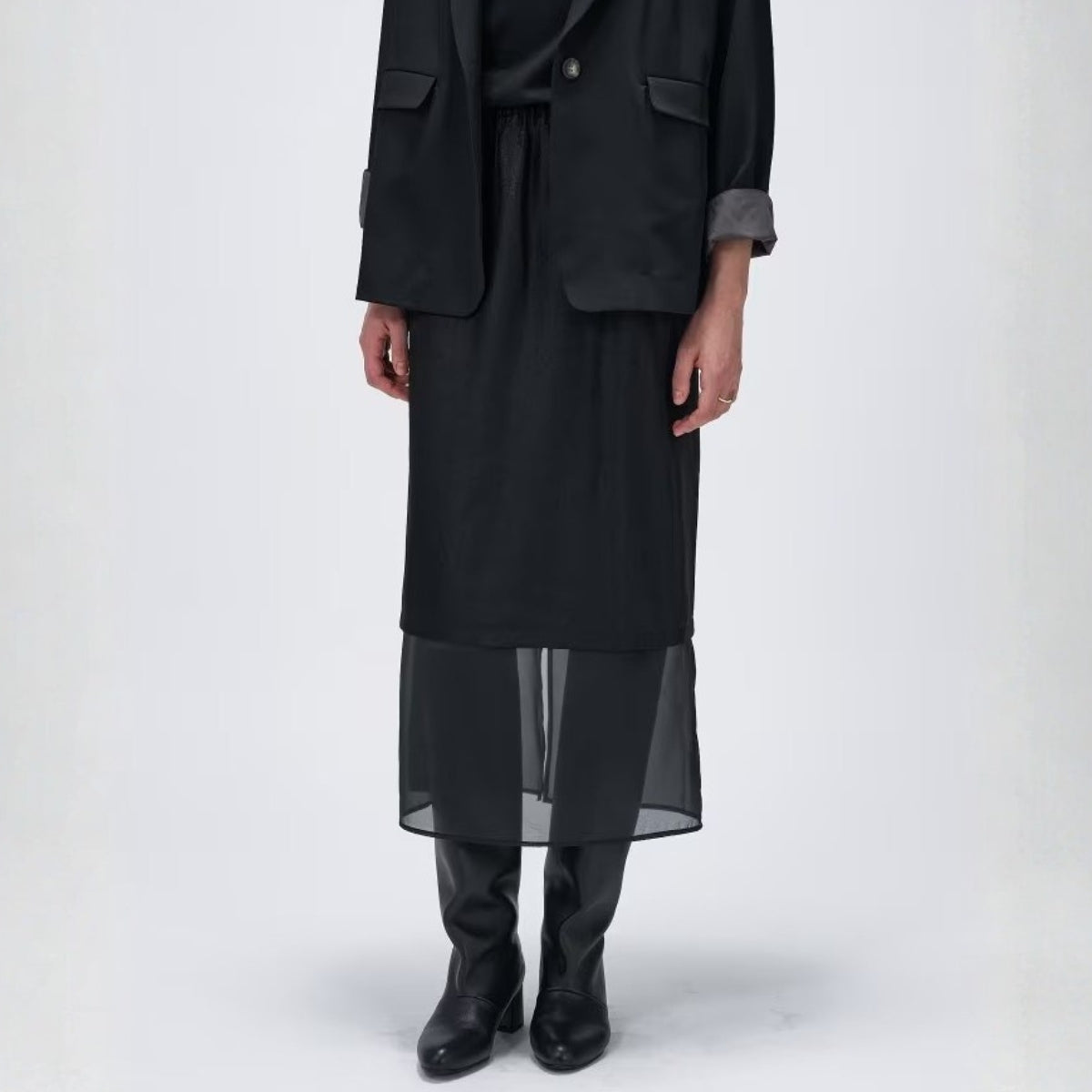 薄透層次感拼接裙 - 黑|cloenc