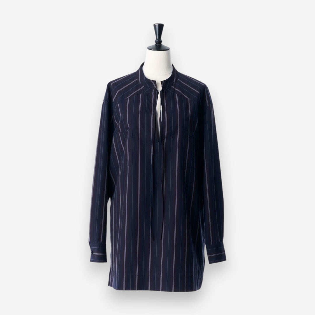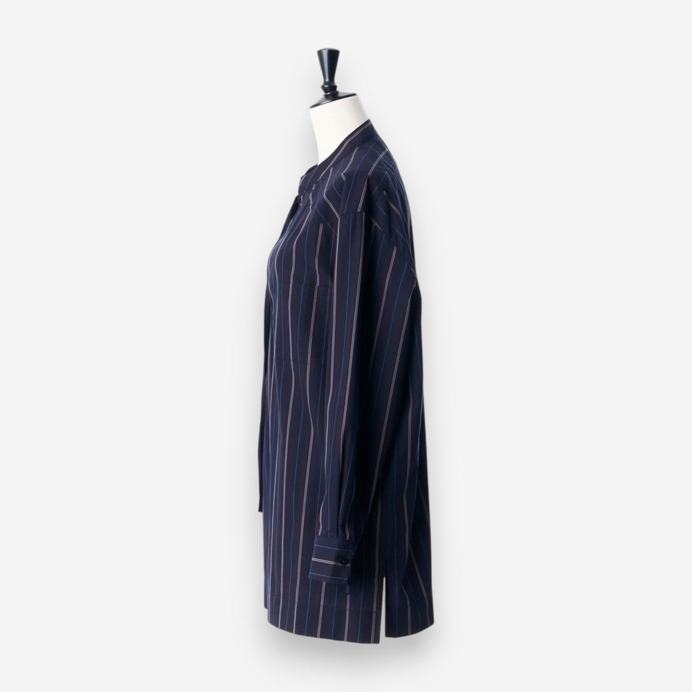 直紋寬版襯衫 - 海軍藍|IKITSUKE