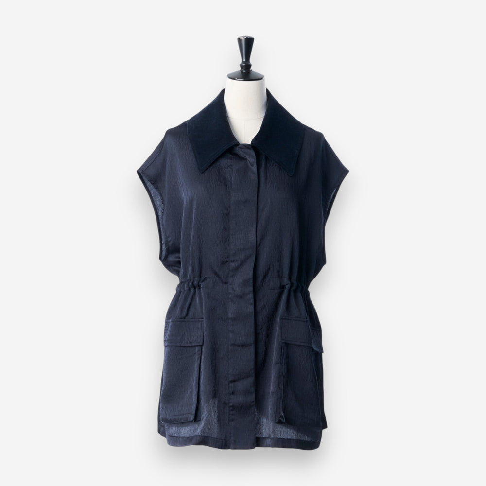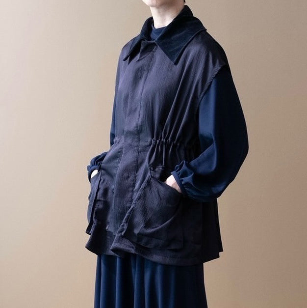 緞面光澤拼接領夾克上衣 - 海軍藍|IKITSUKE