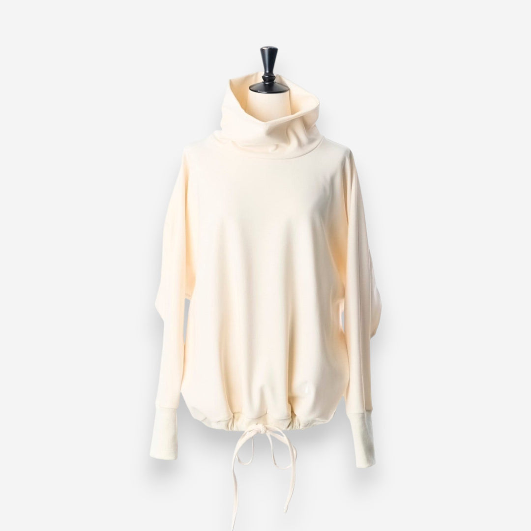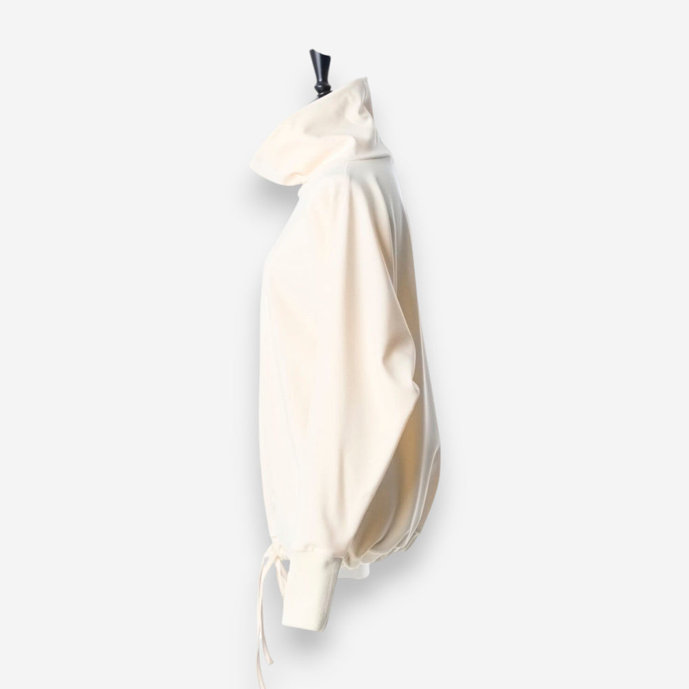 立領下擺抽繩舒適保暖上衣 - 米白|IKITSUKE 日本製