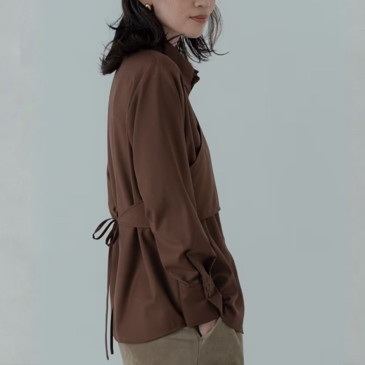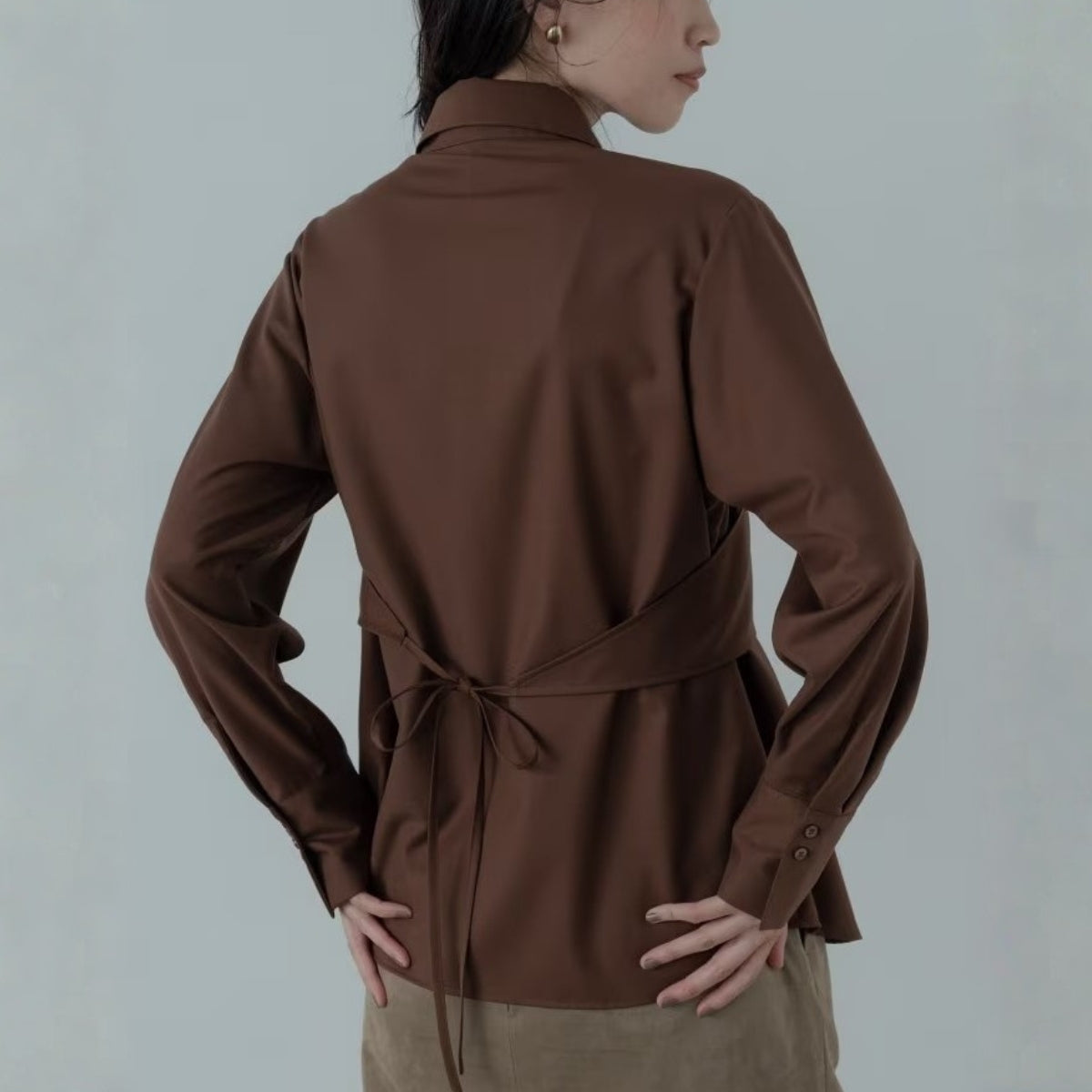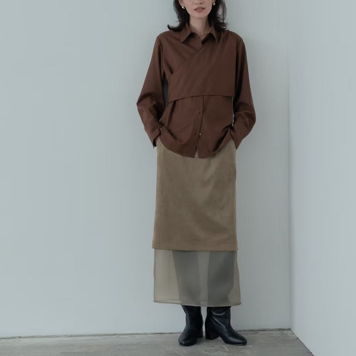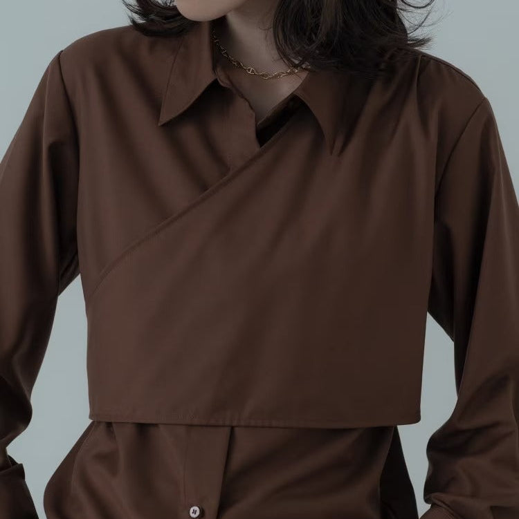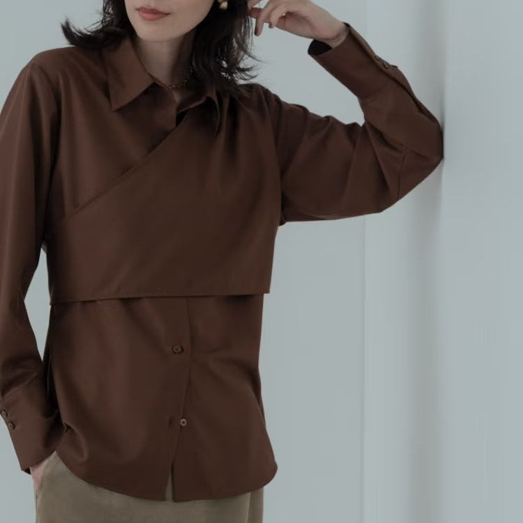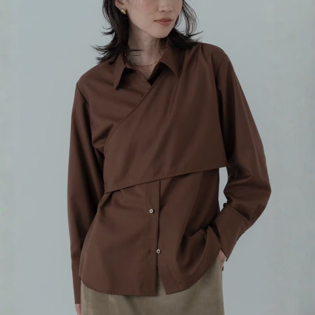 不對稱交疊設計襯衫 - 棕|GALLEST