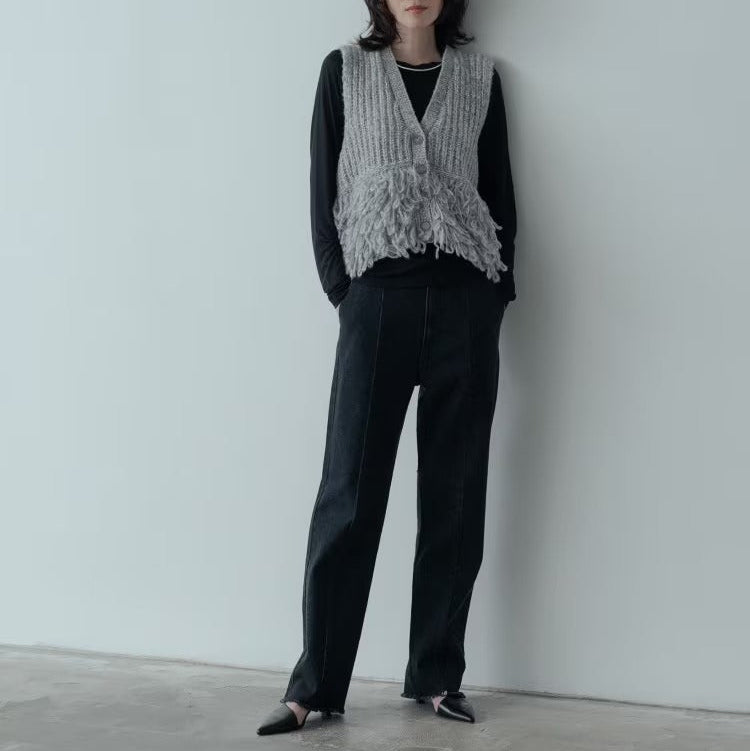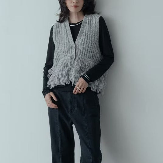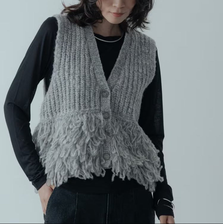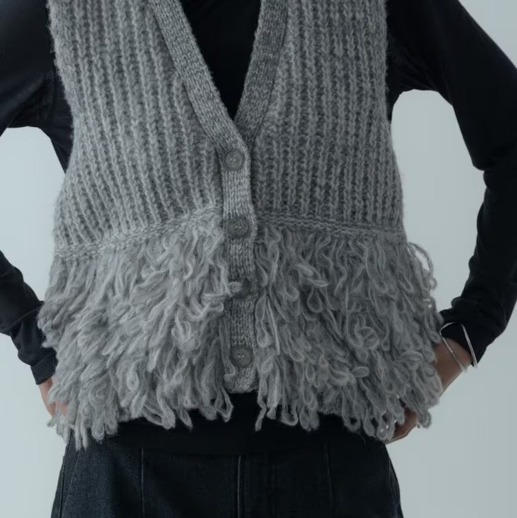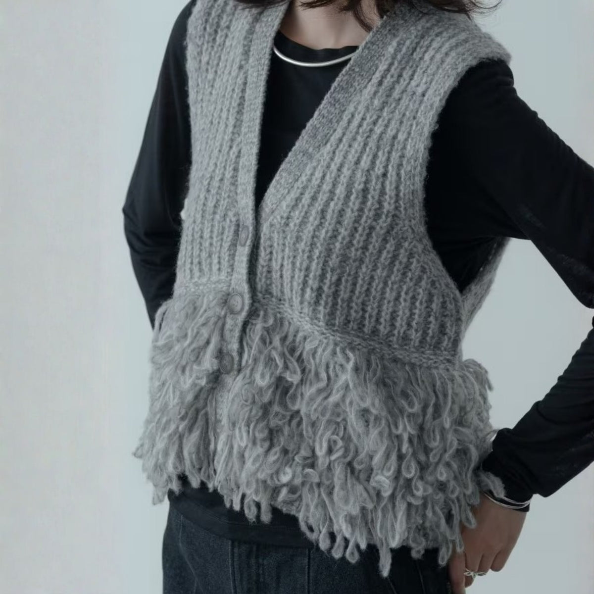 上身為細緻羅紋、下擺以圈圈織紋收出微微荷葉感,隨性中帶一點女性氣質。