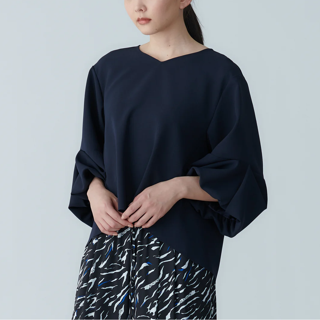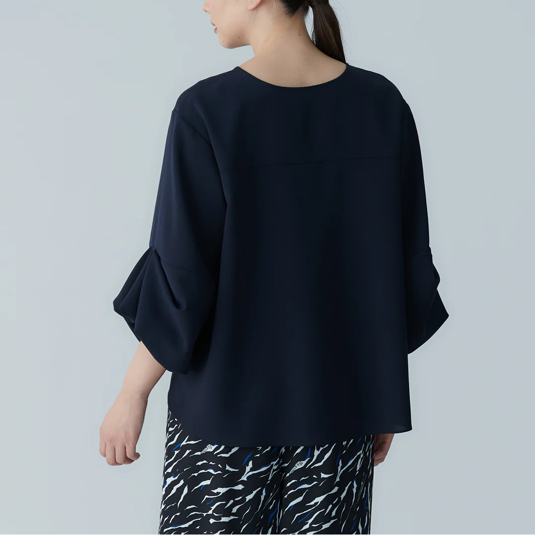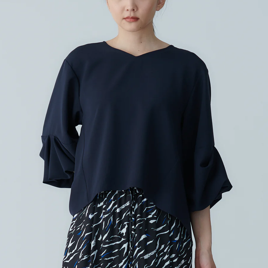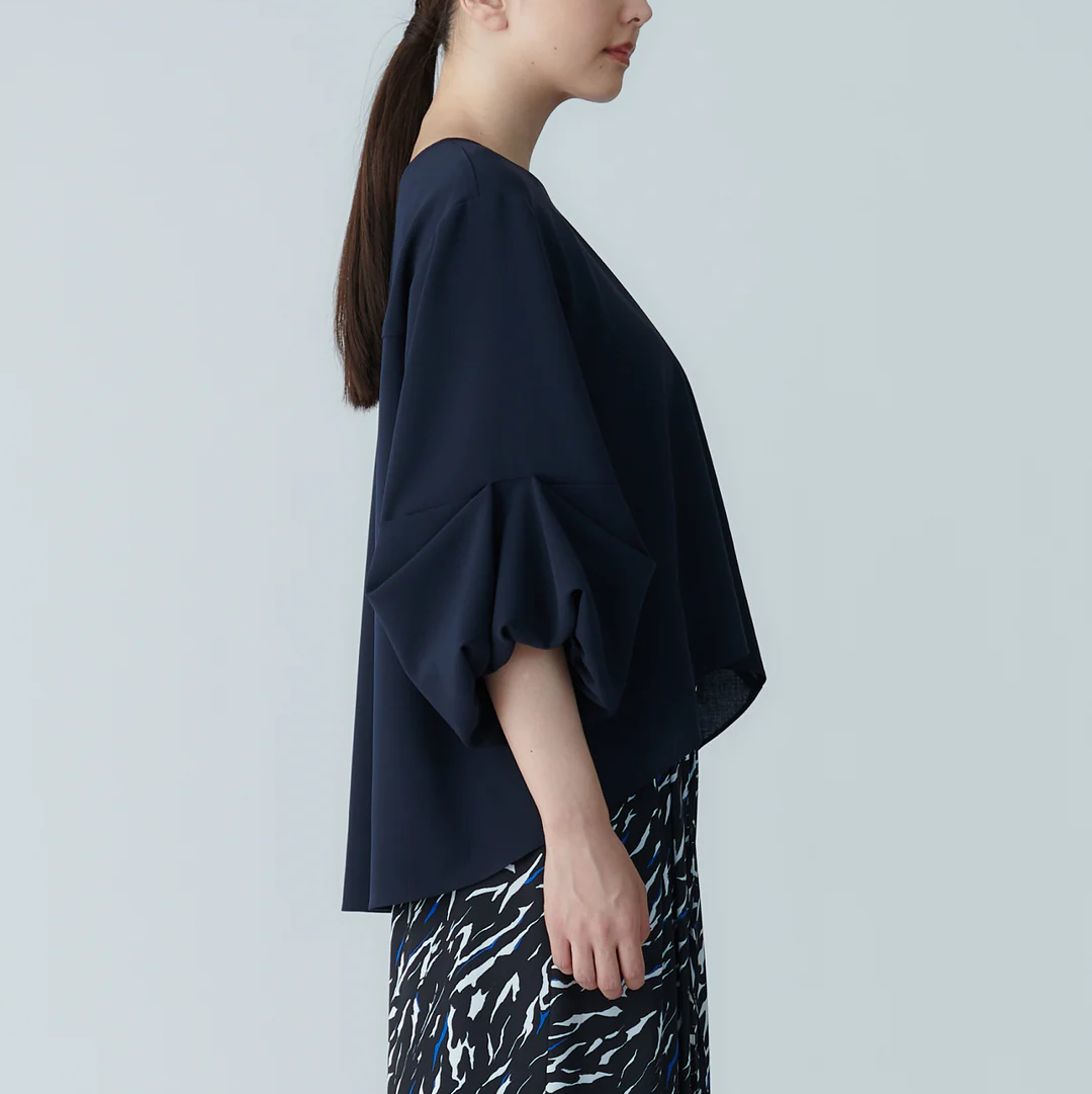澎袖設計襯衫 - 深藍|BRAHMIN