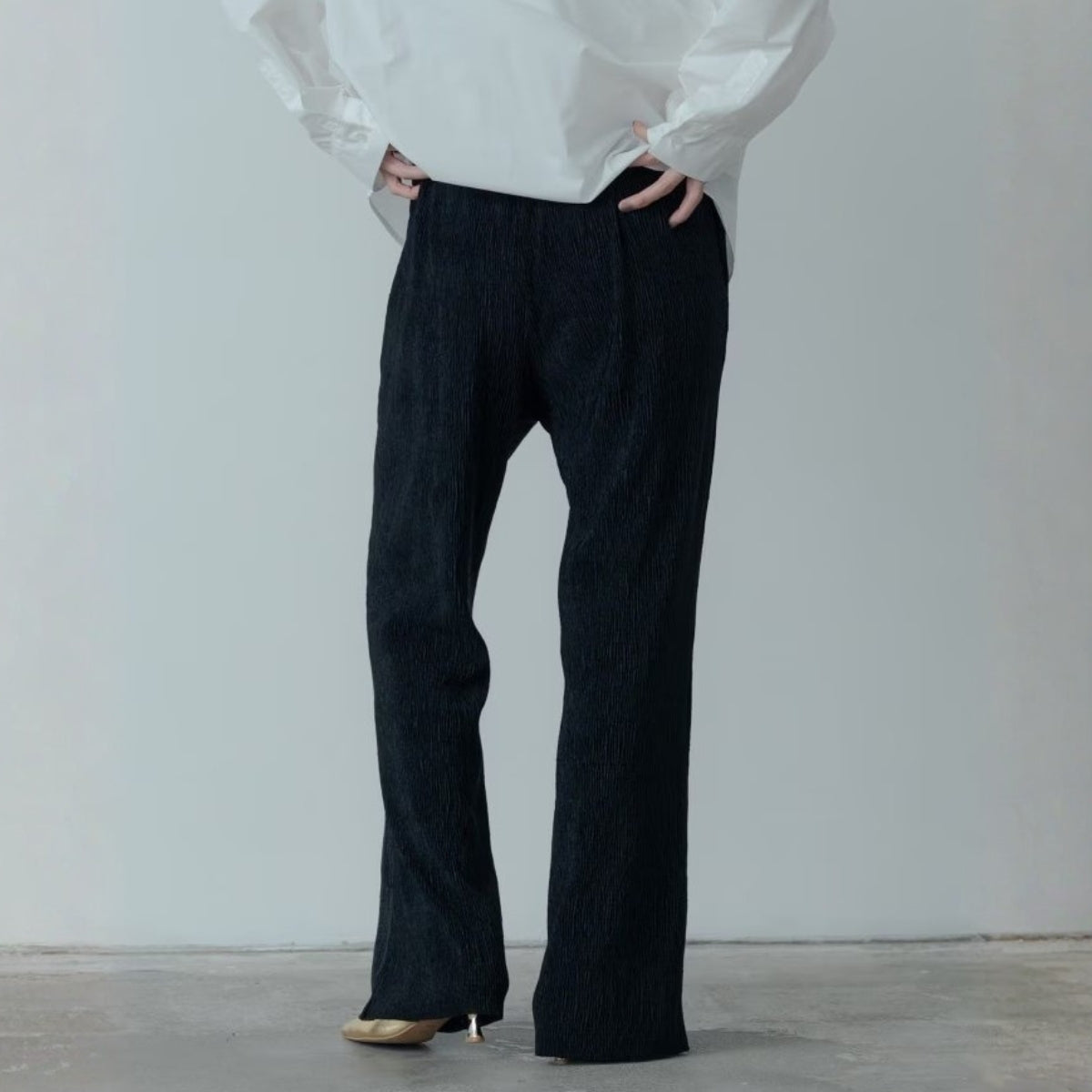 膝下自然展開的喇叭線條修飾腿型、拉長比例。