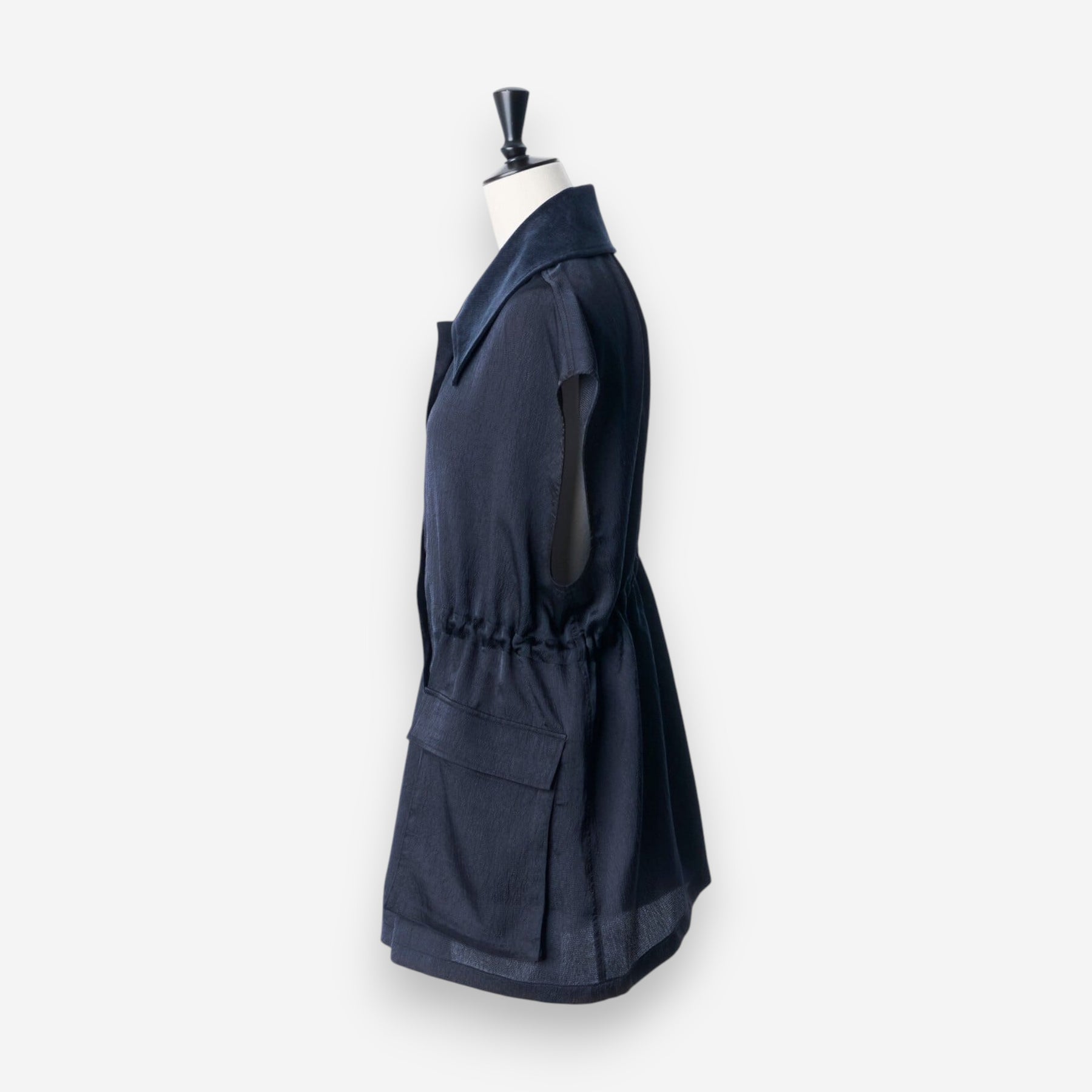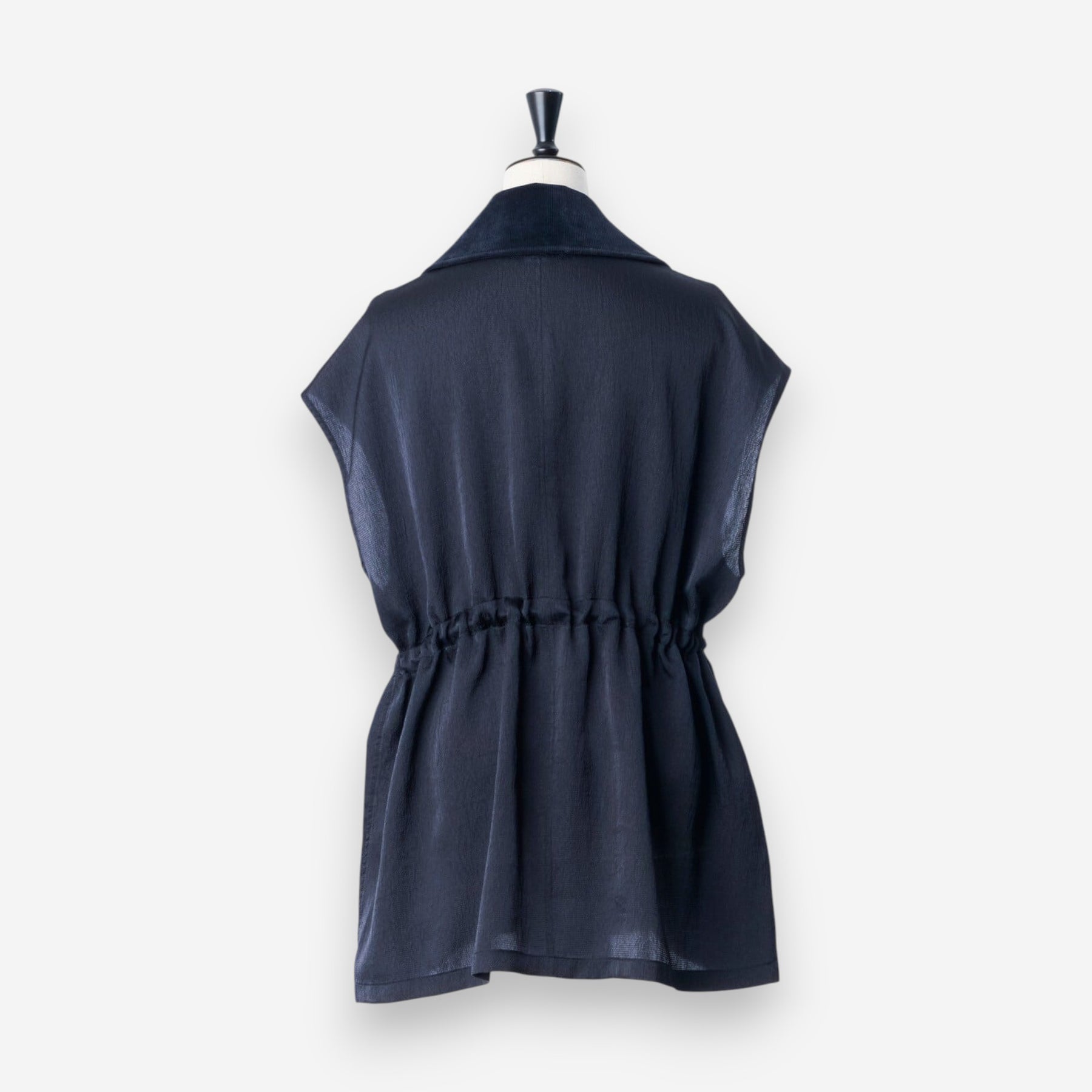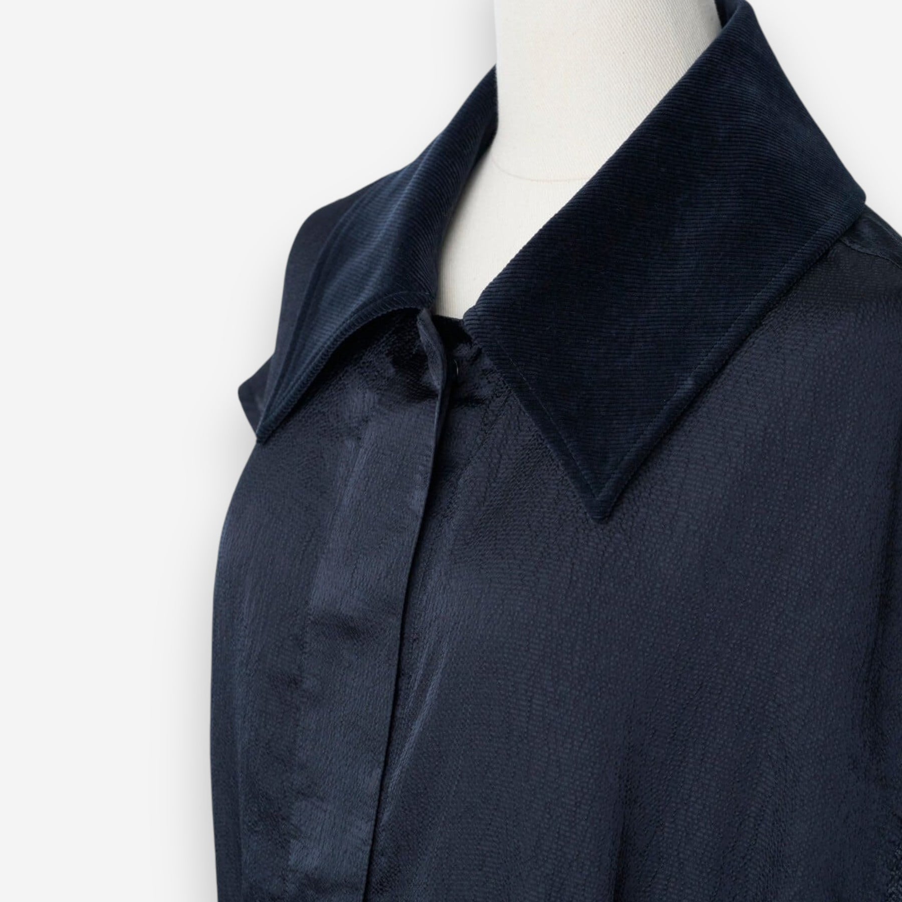 緞面光澤拼接領夾克上衣 - 海軍藍|IKITSUKE