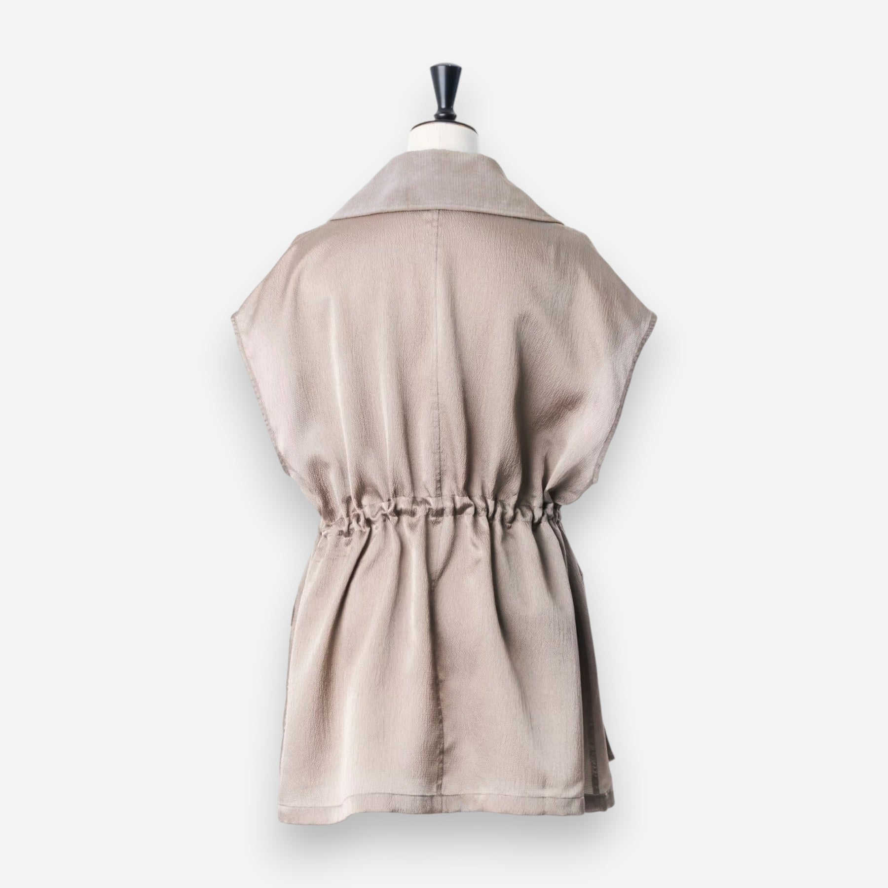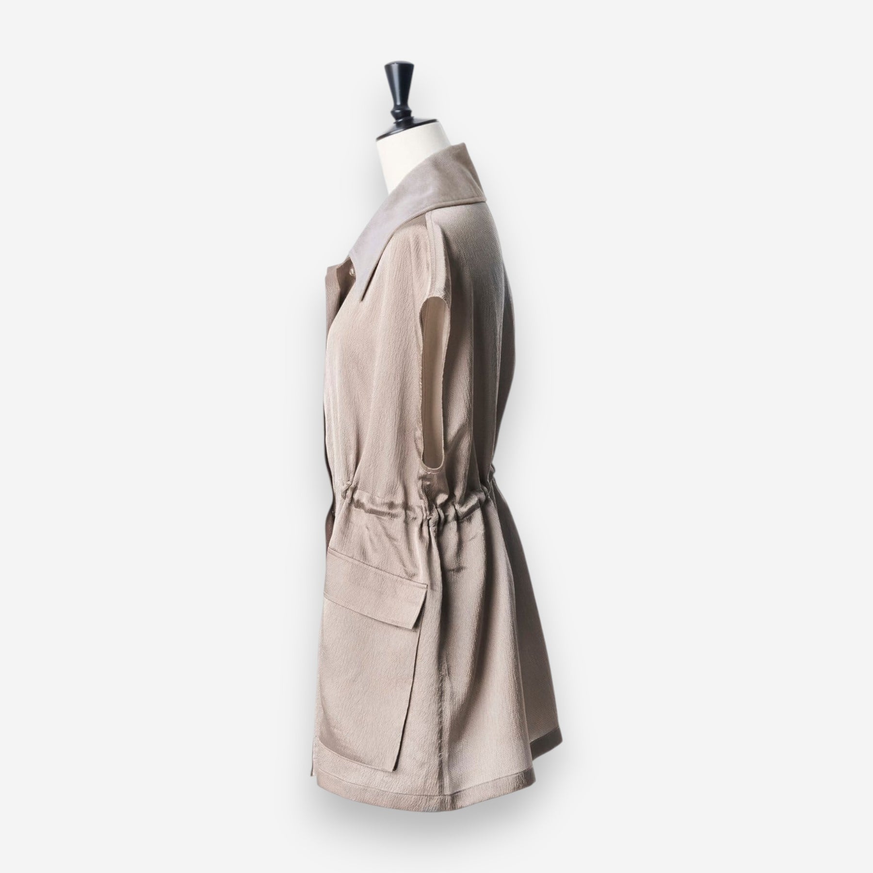 緞面光澤拼接領夾克上衣 - 灰|IKITSUKE