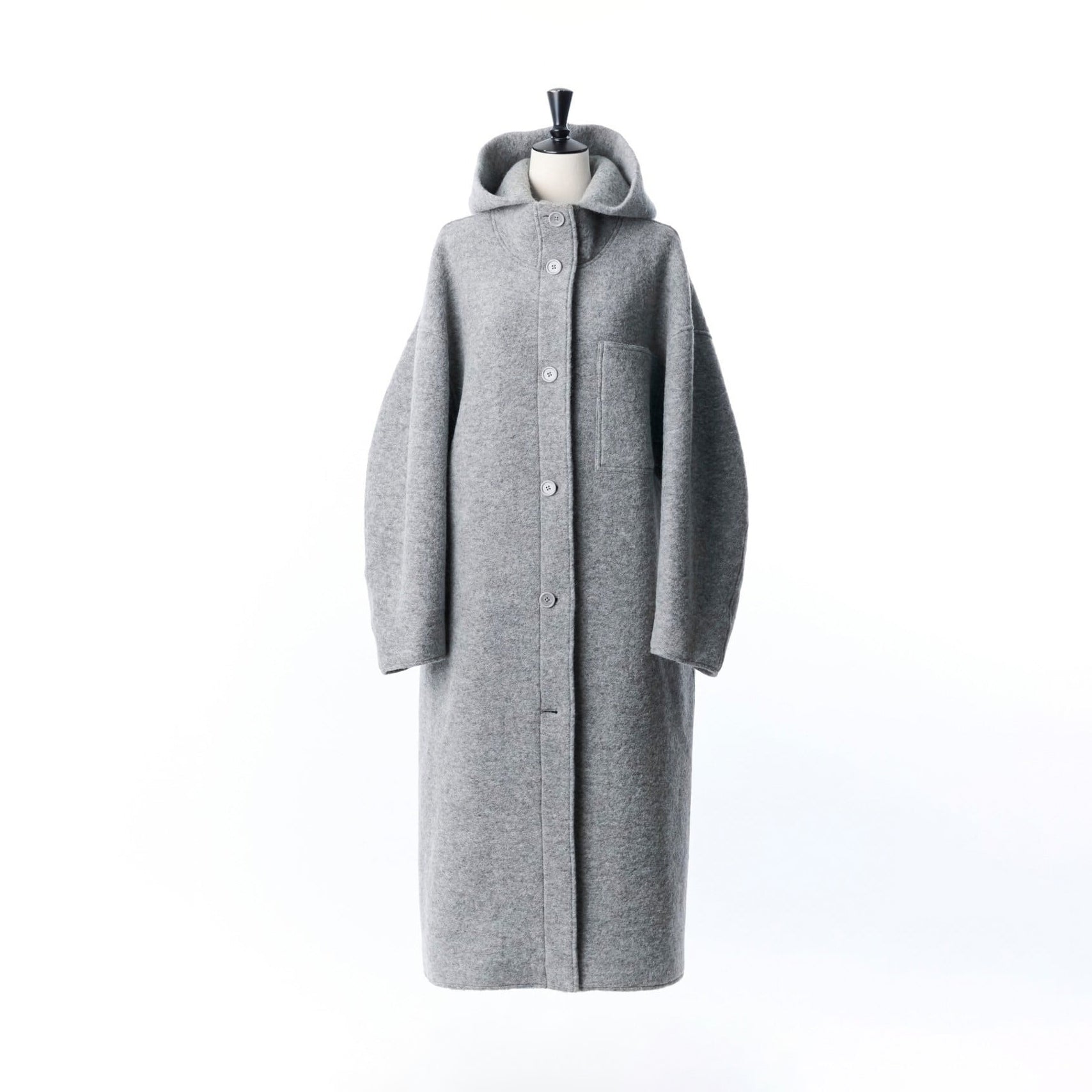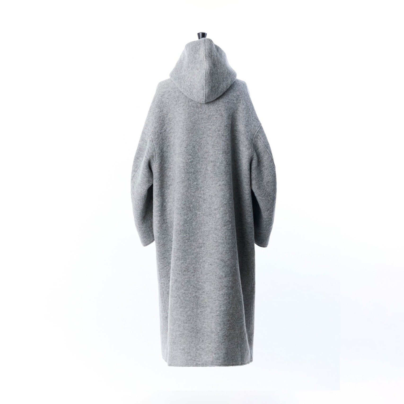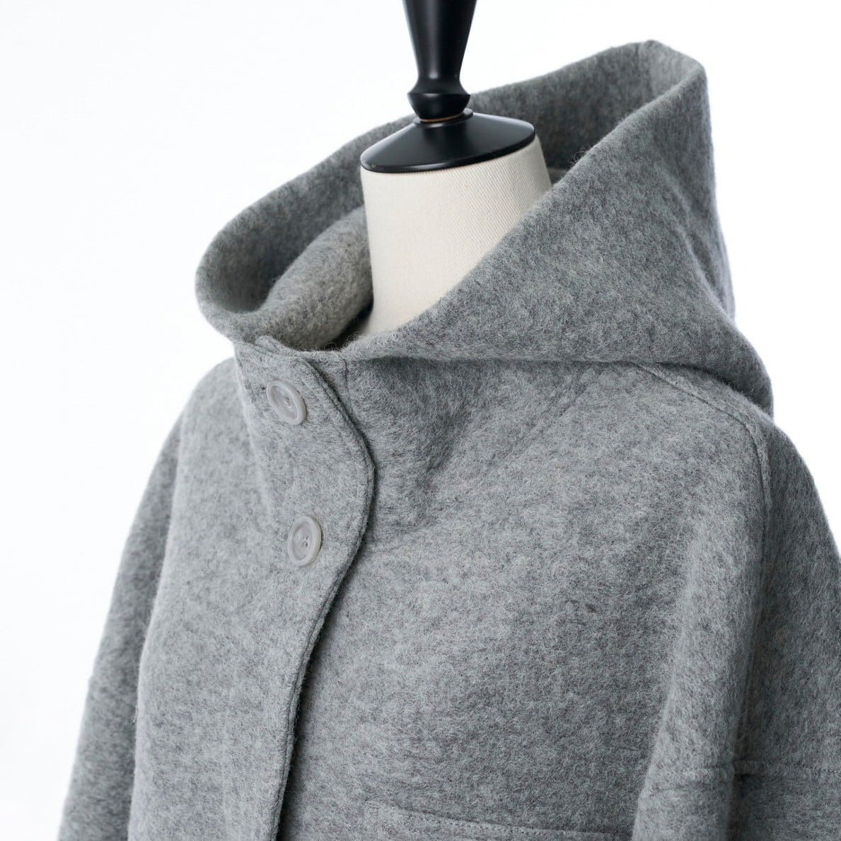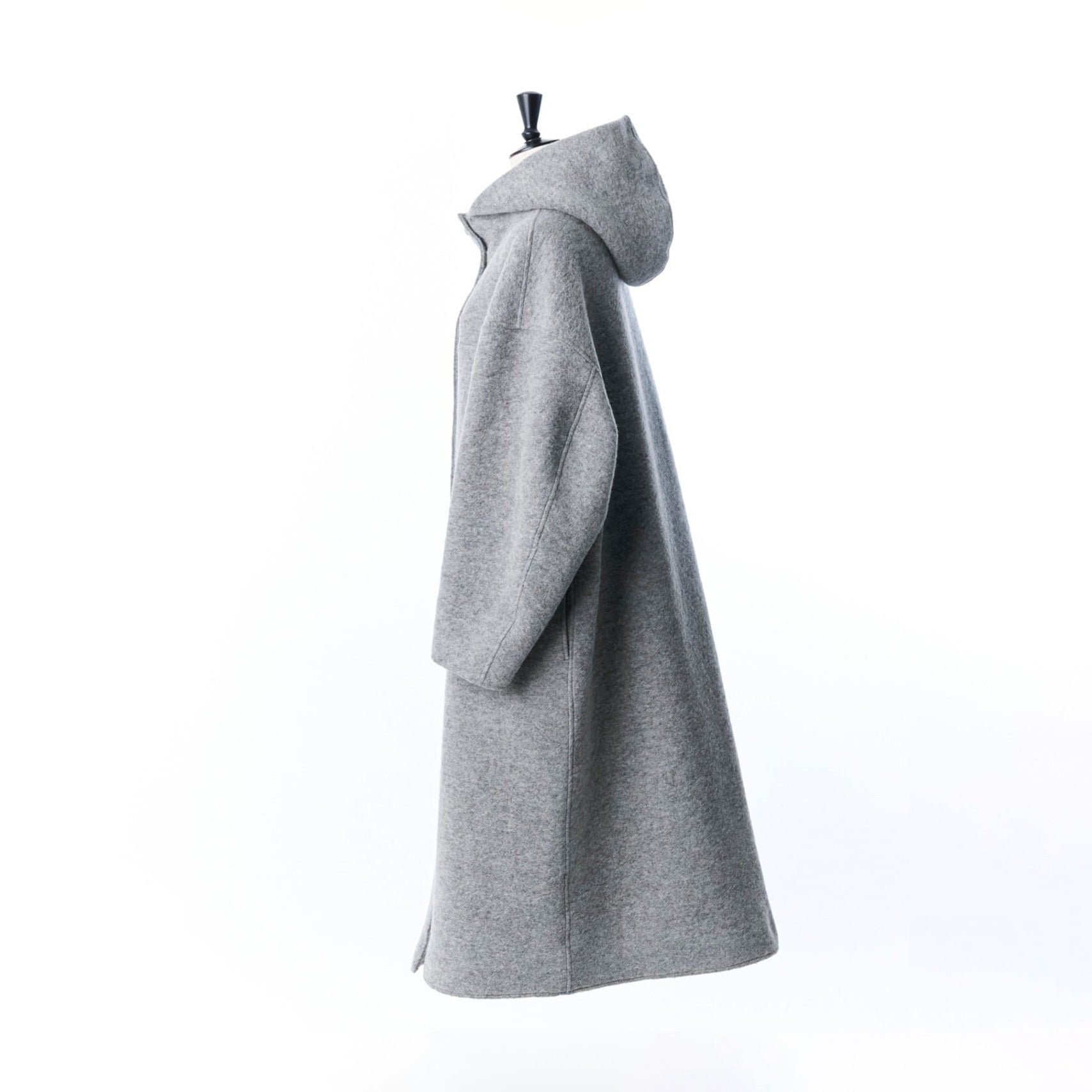 羊毛混紡連帽長版大衣 - 灰|IKITSUKE
