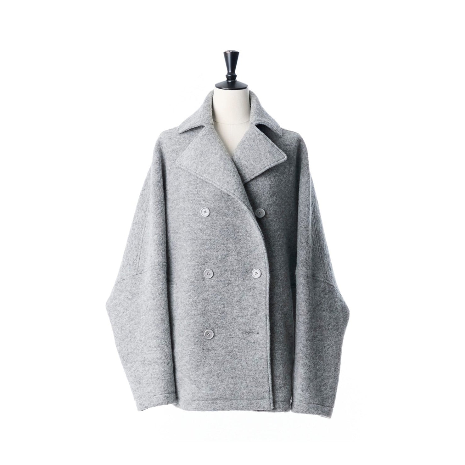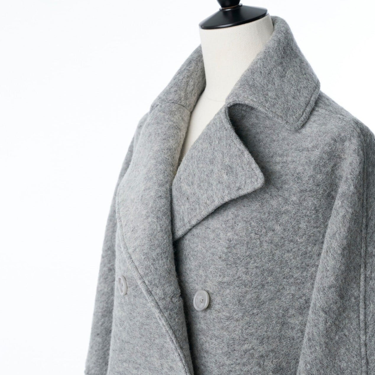 羊毛混紡雙排扣大衣 - 灰|IKITSUKE