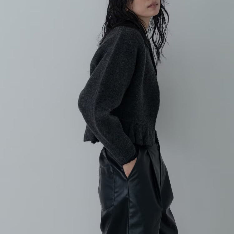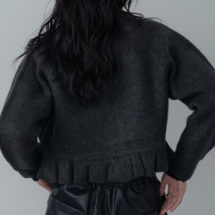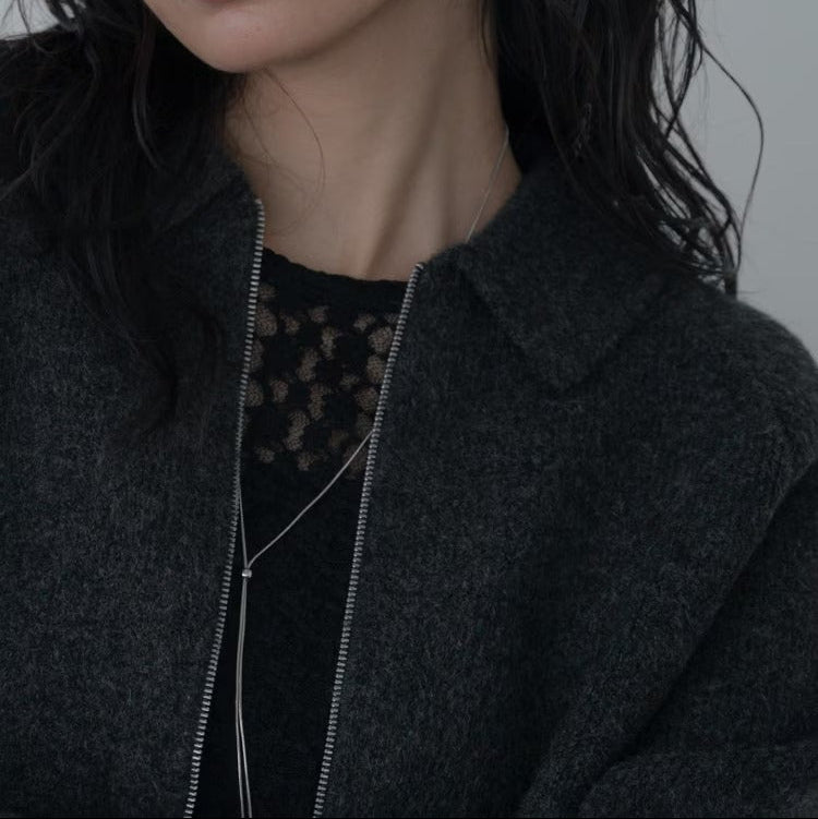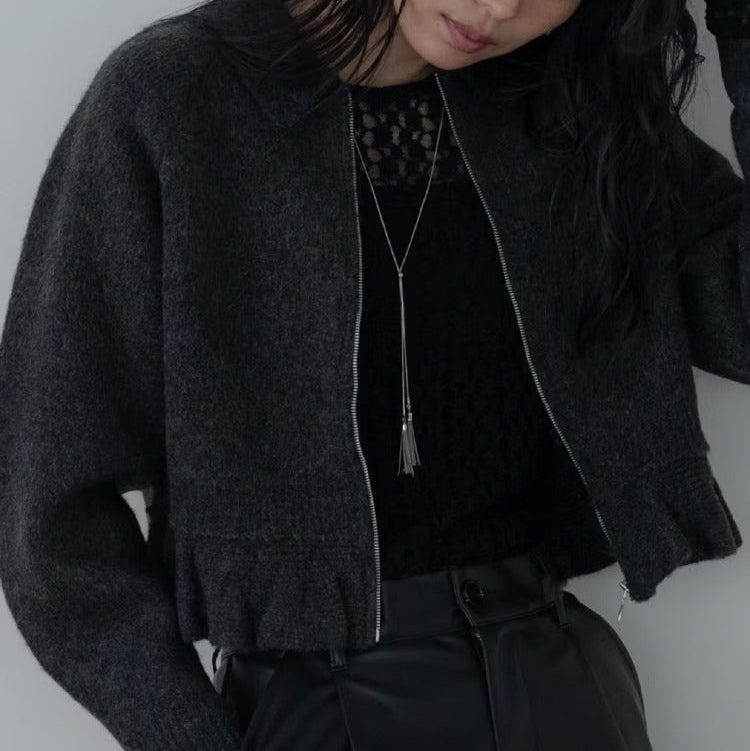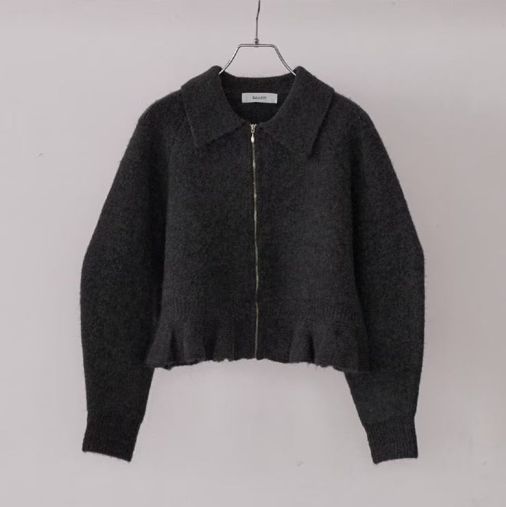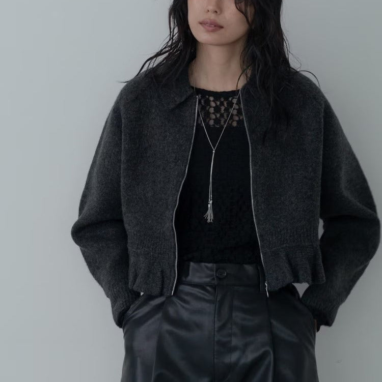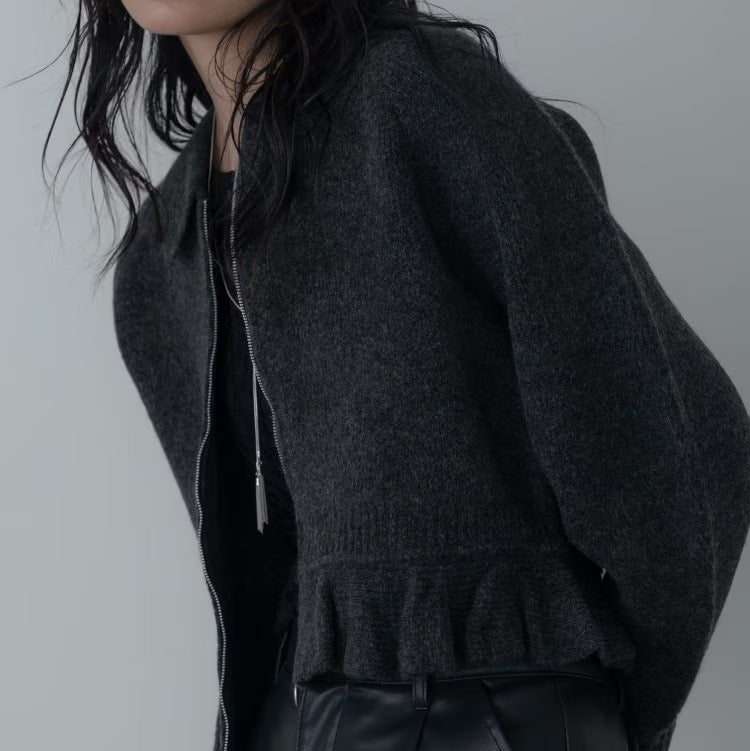 荷葉下擺拉鍊開襟衫 - 炭灰|GALLEST