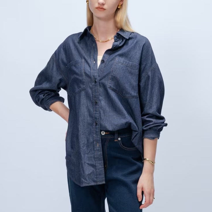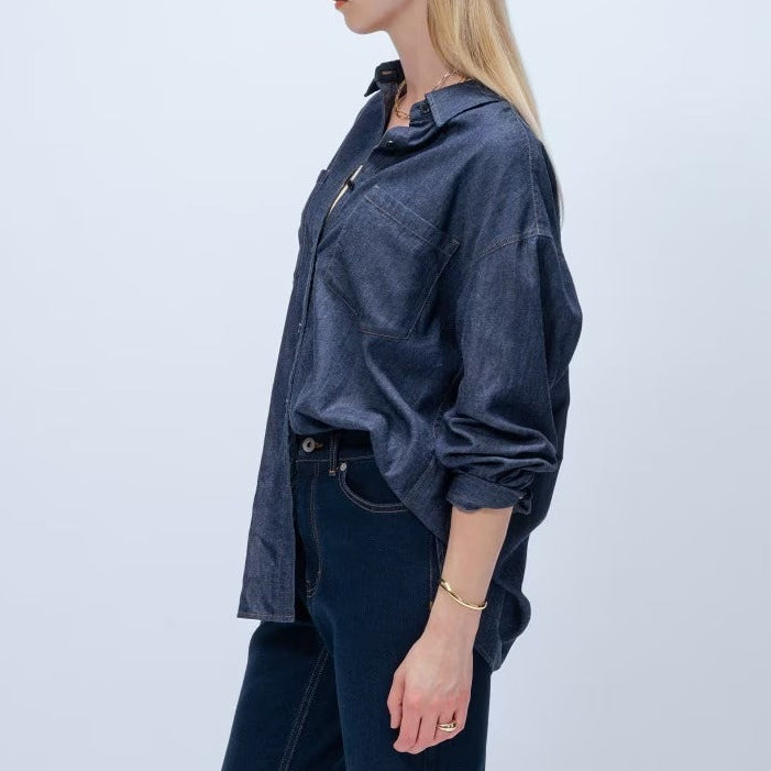 輕量丹寧襯衫 - 深藍|cloenc
