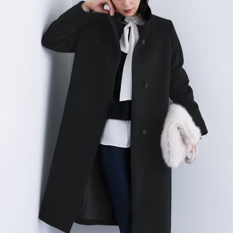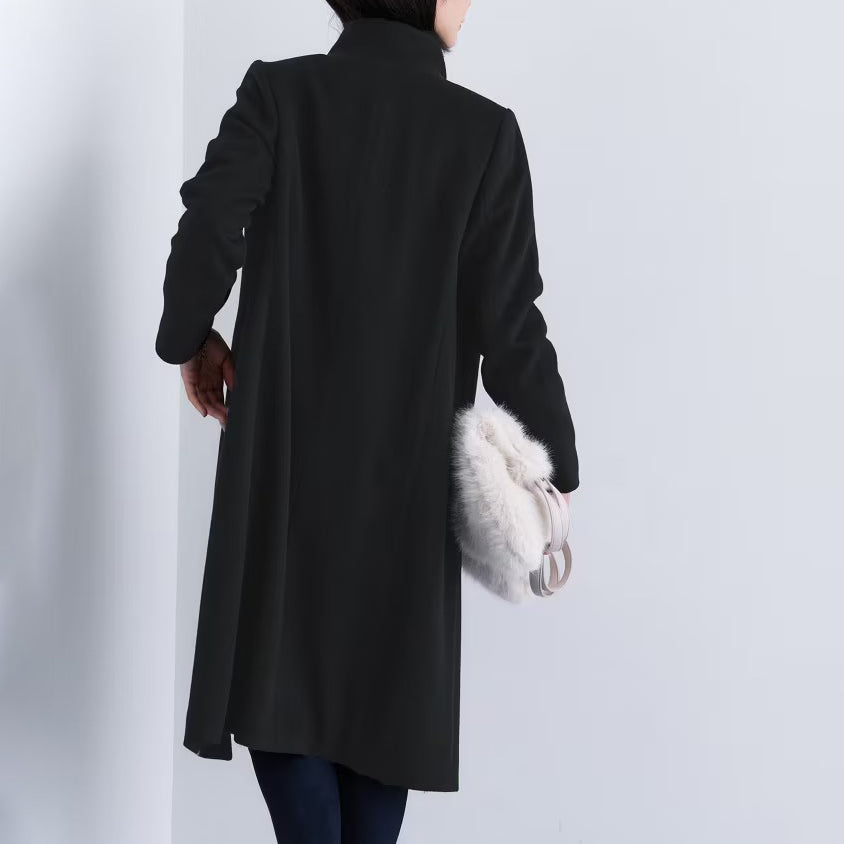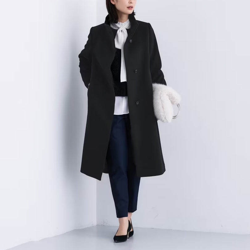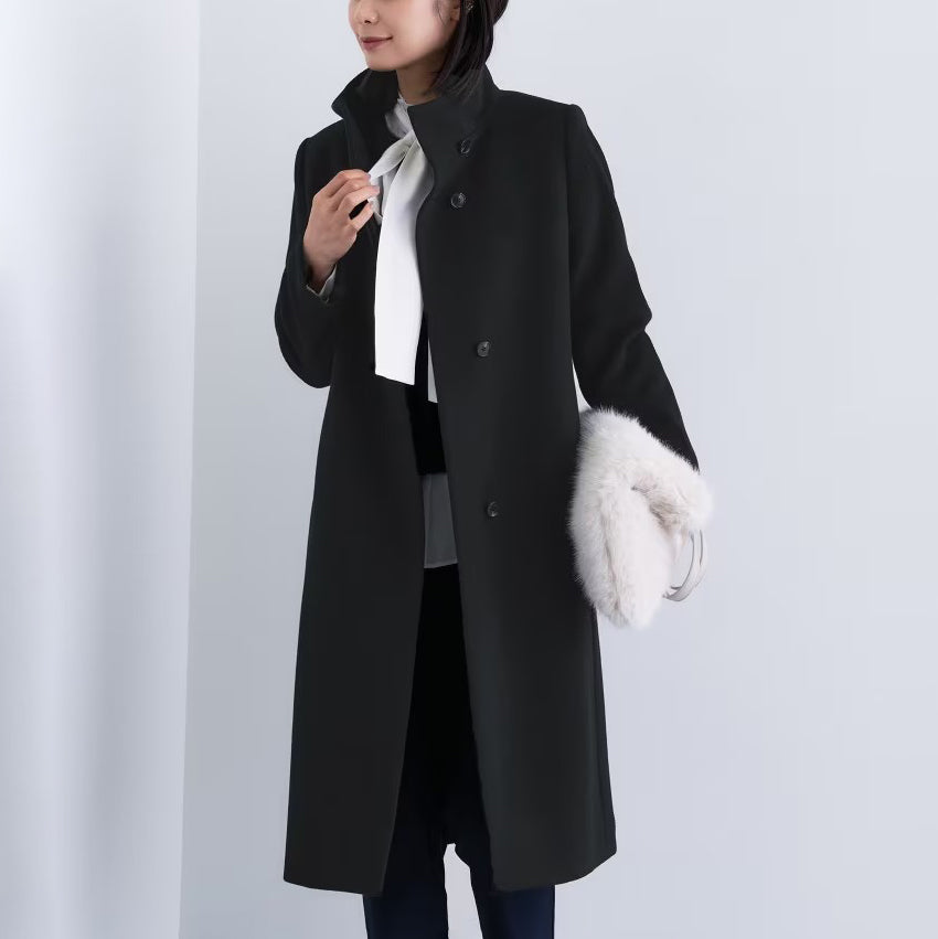 100%羊毛立領長版大衣 - 黑|INDIVI 日本製