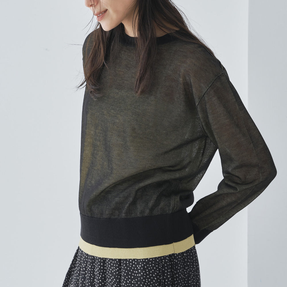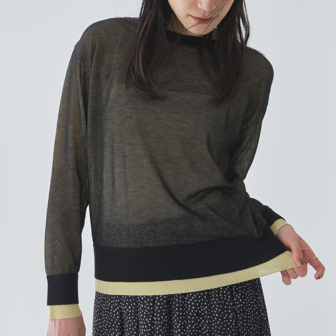 層次拼色微透膚針織上衣 - 黑|Audrey and John Wad