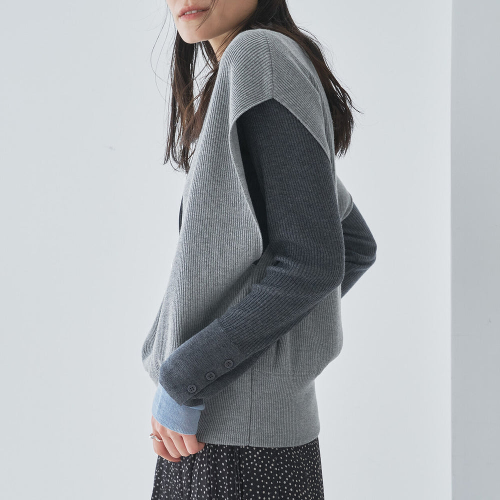 鏤空拼接層次感羅紋洋裝 - 灰|Bou Jeloud