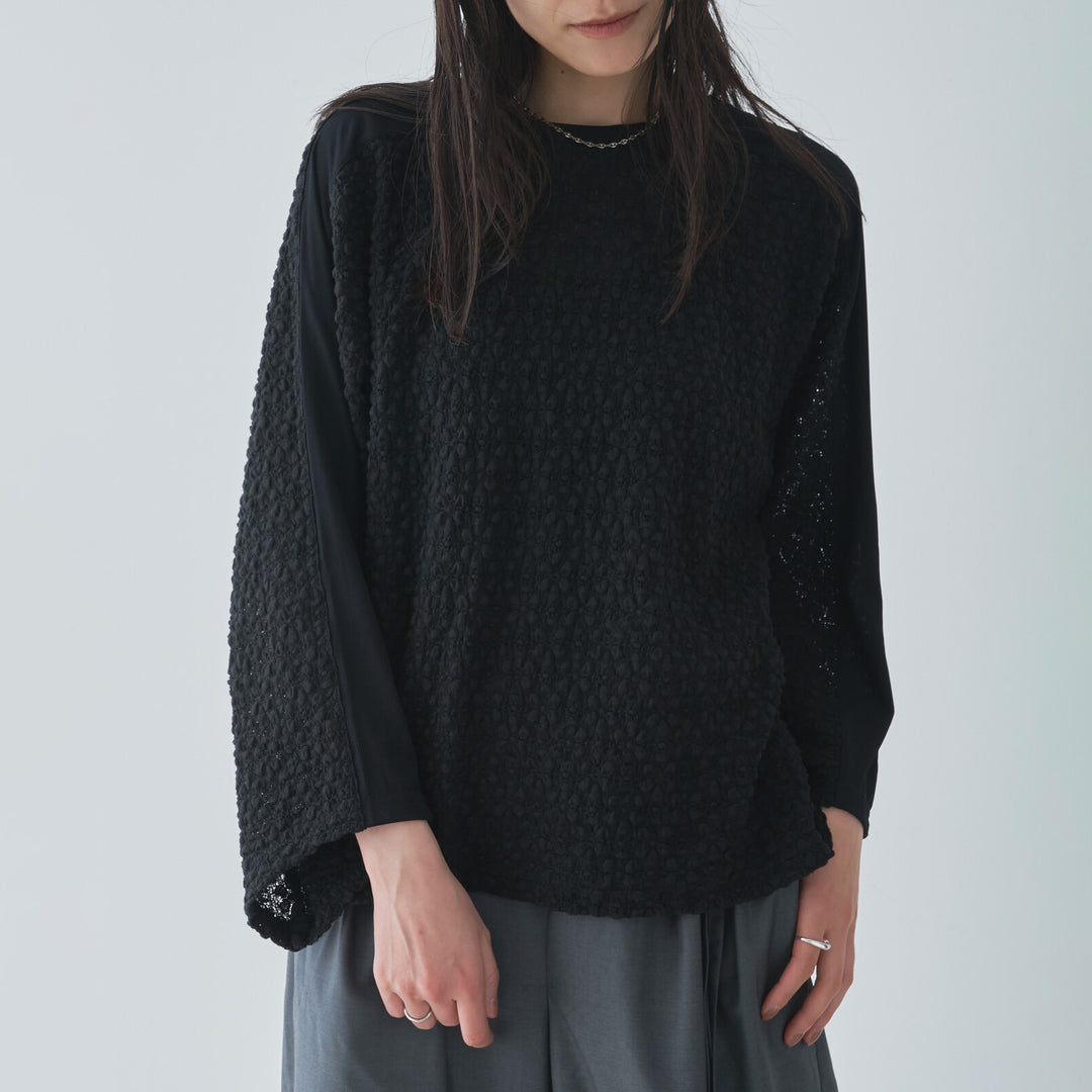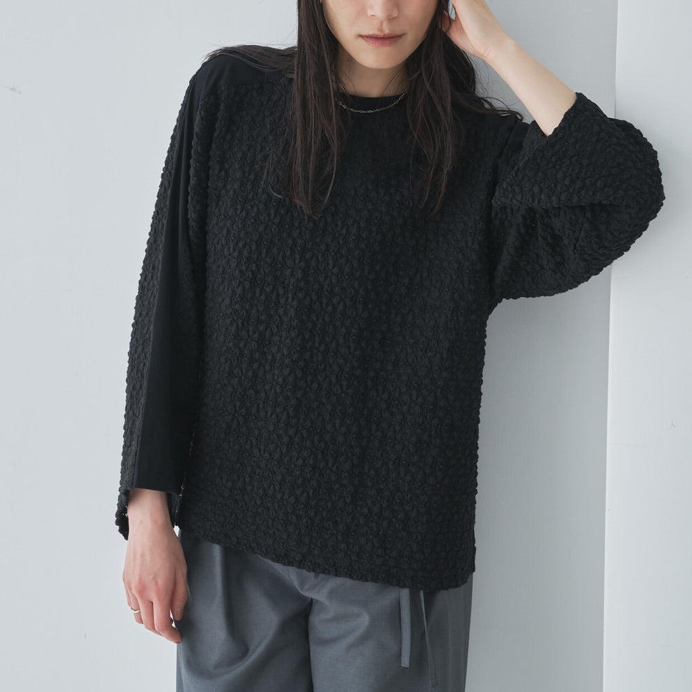 立體壓紋拼接設計上衣 - 黑|Audrey and John Wad