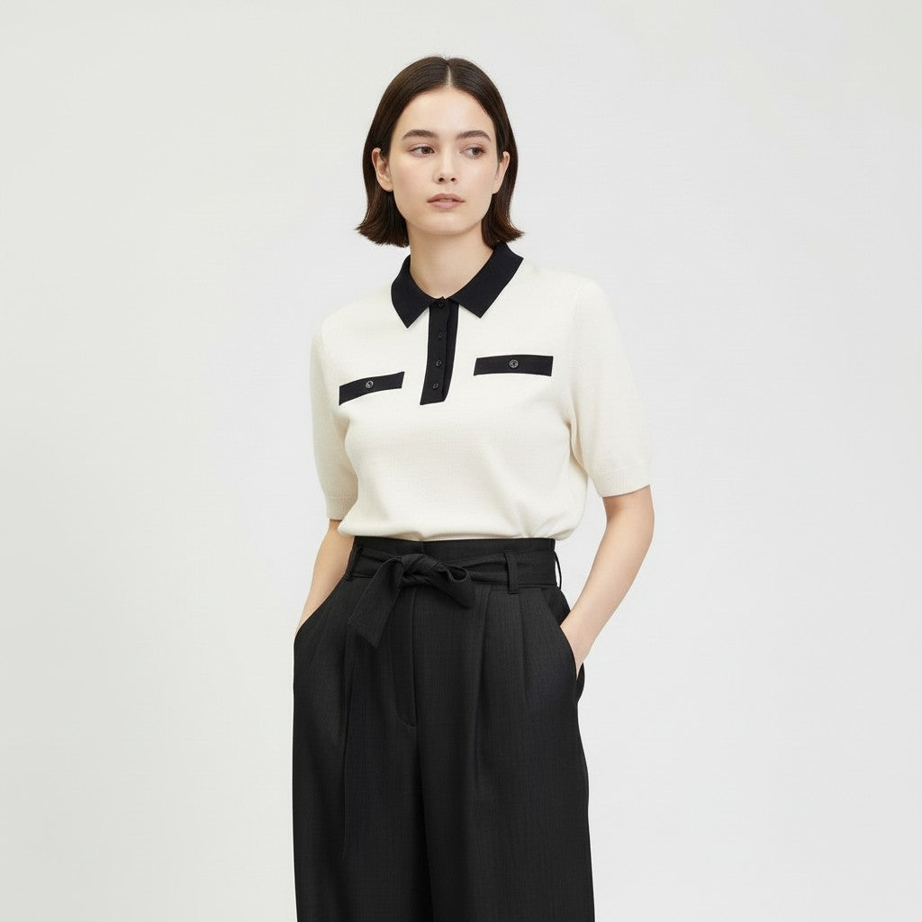 清新輕紗拼色喇叭七分袖上衣 - 白|classy chic