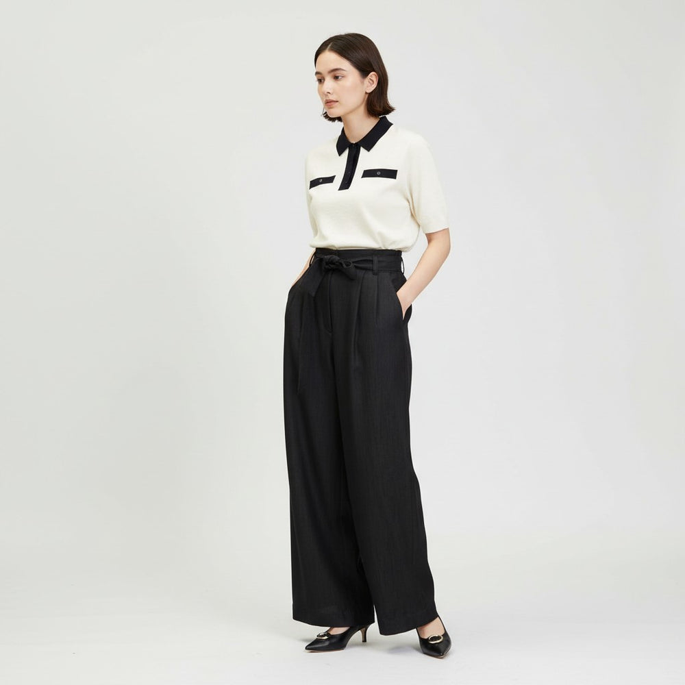 垂墜感寬版長褲 - 深藍|BEATRICE