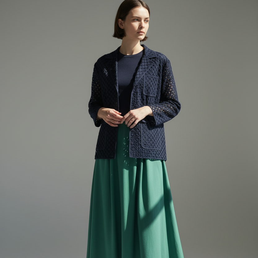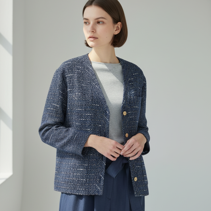 和紙混紡無縫九分袖開襟外套 - 杏|Audrey and John Wad 日本製