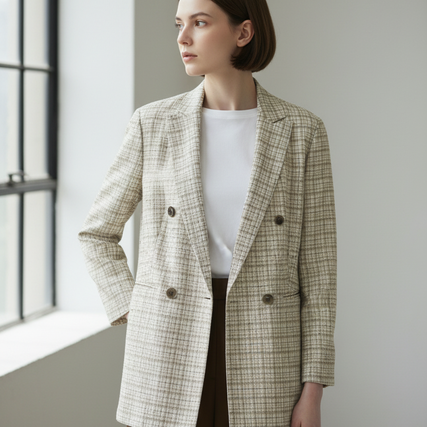 羊毛混紡雙排扣大衣 - 灰|IKITSUKE