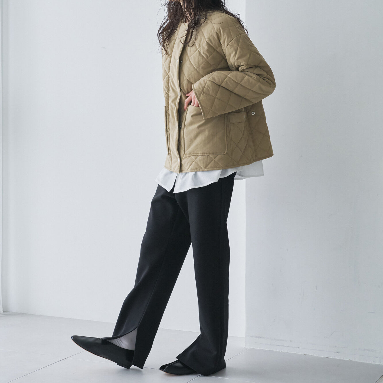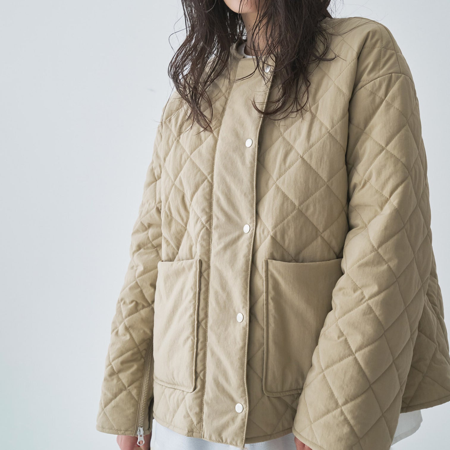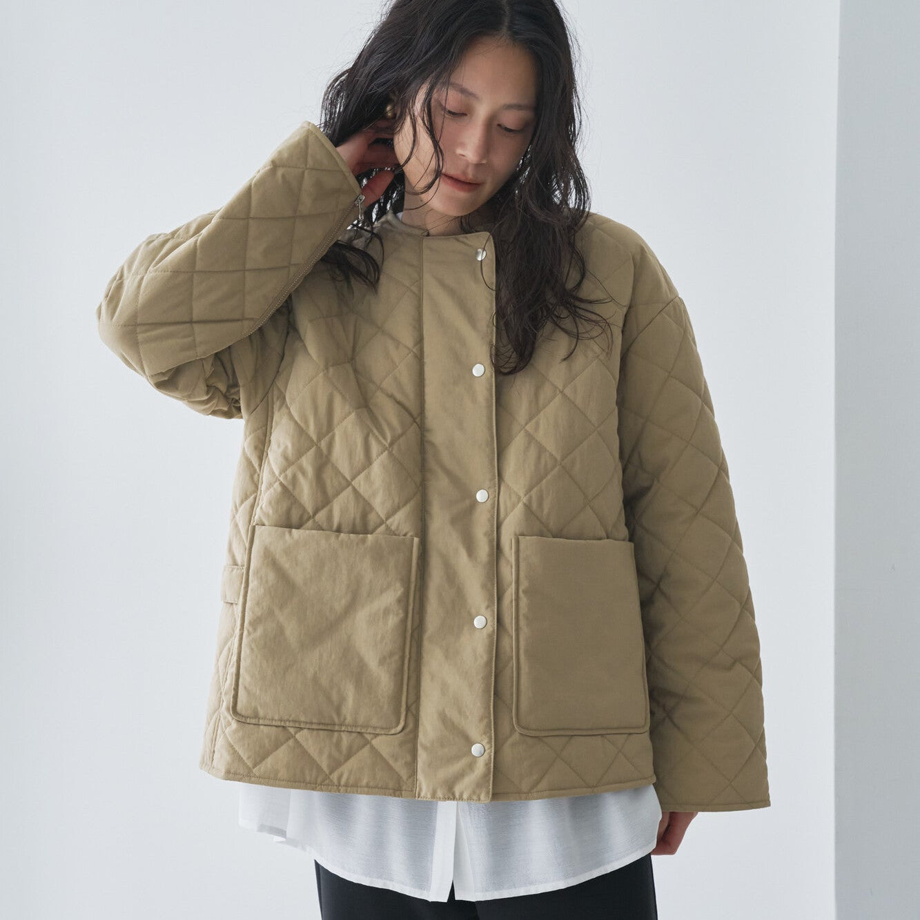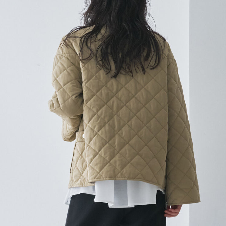 帶有成熟氛圍的鋪棉外套,捨去多餘裝飾,以俐落無領設計呈現清爽輪廓,輕盈好穿不顯厚重。