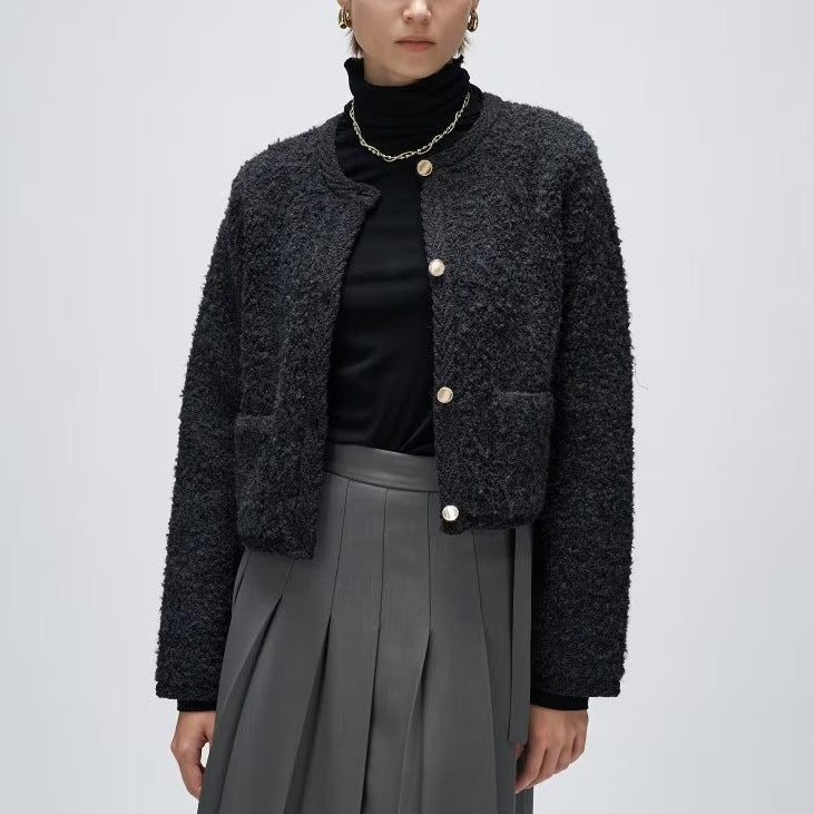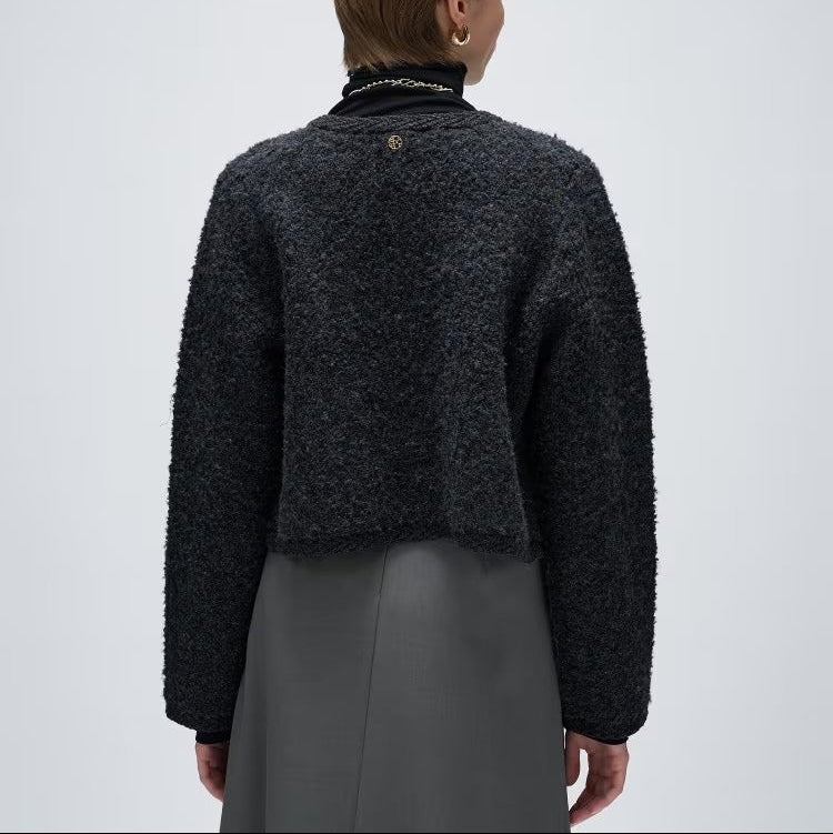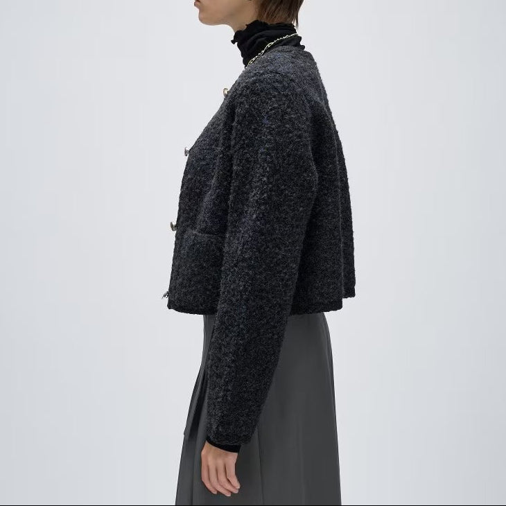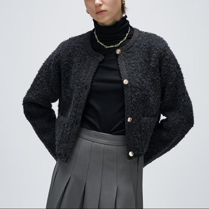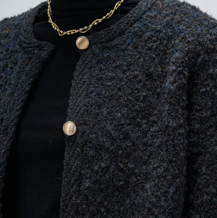 混合色紗線讓視覺更有層次,金色釦點綴,增添優雅細節。