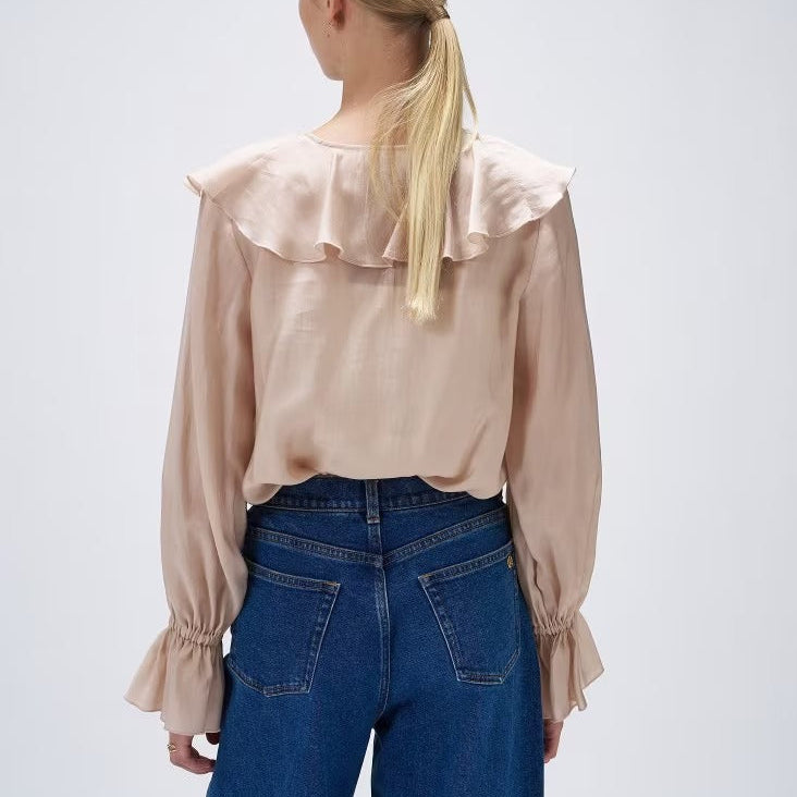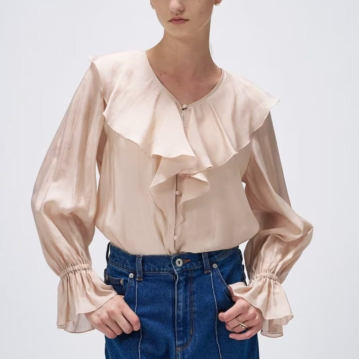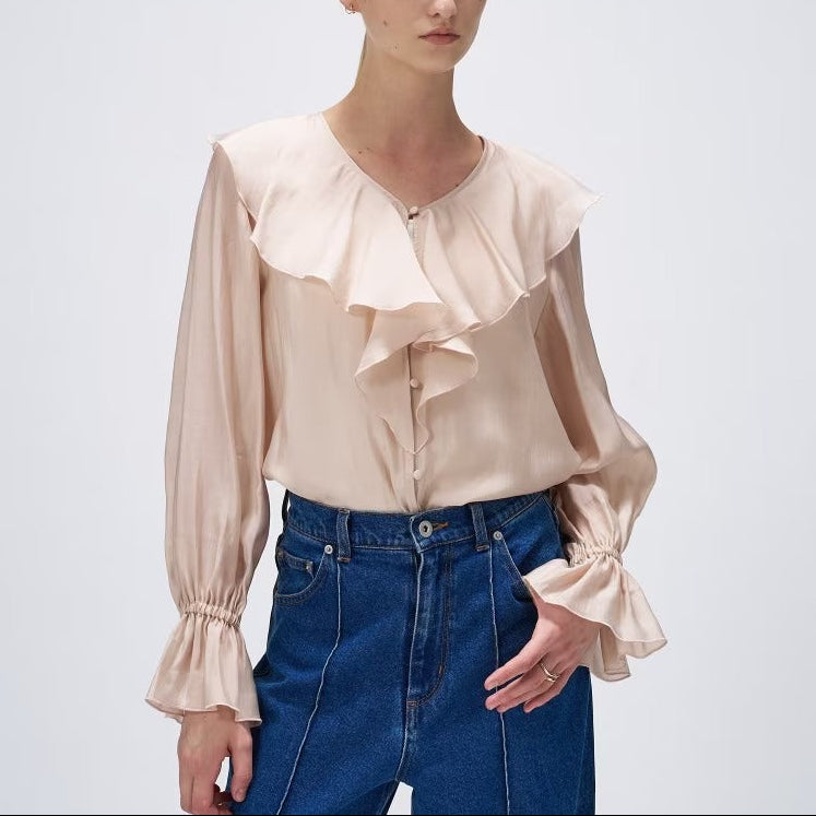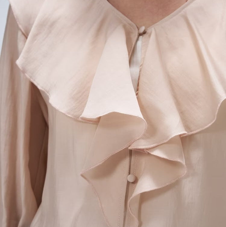 柔美荷葉V領襯衫 - 粉膚|cloenc
