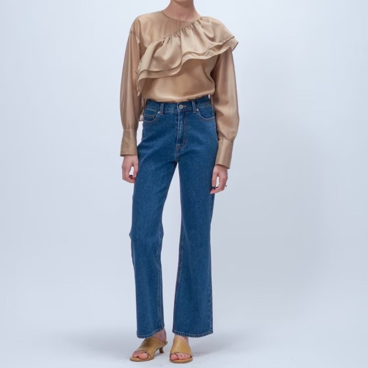 從膝以下緩緩展開的喇叭線條,修飾腿型同時帶出優雅步幅。