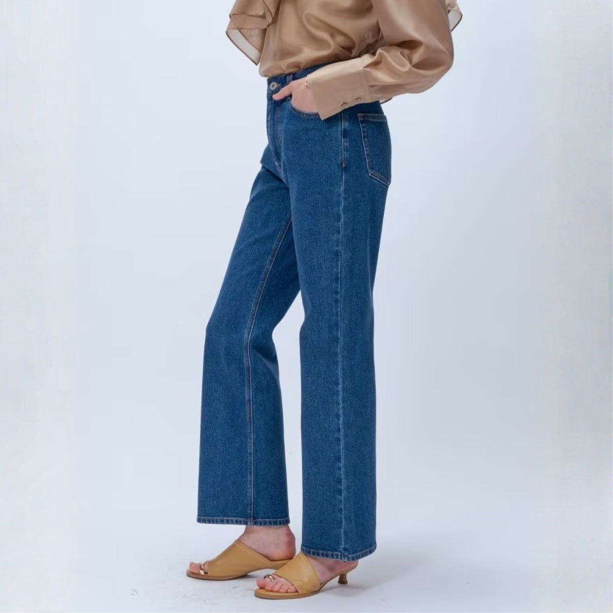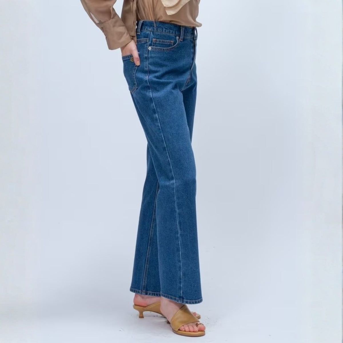 簡約彈性單寧喇叭褲 - 淺藍|cloenc