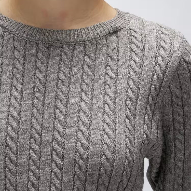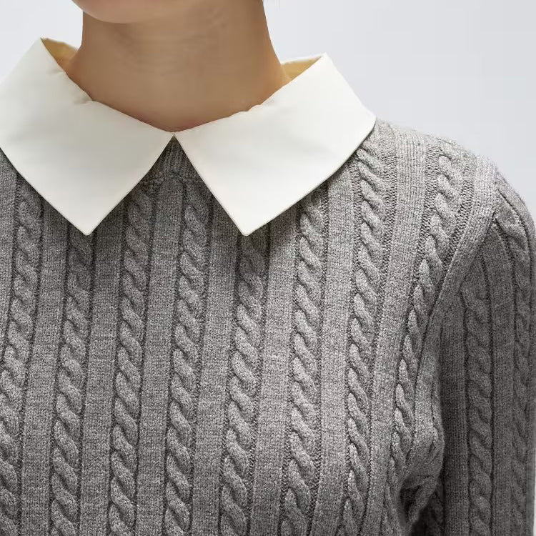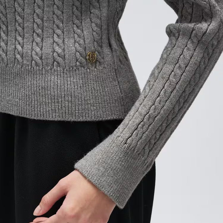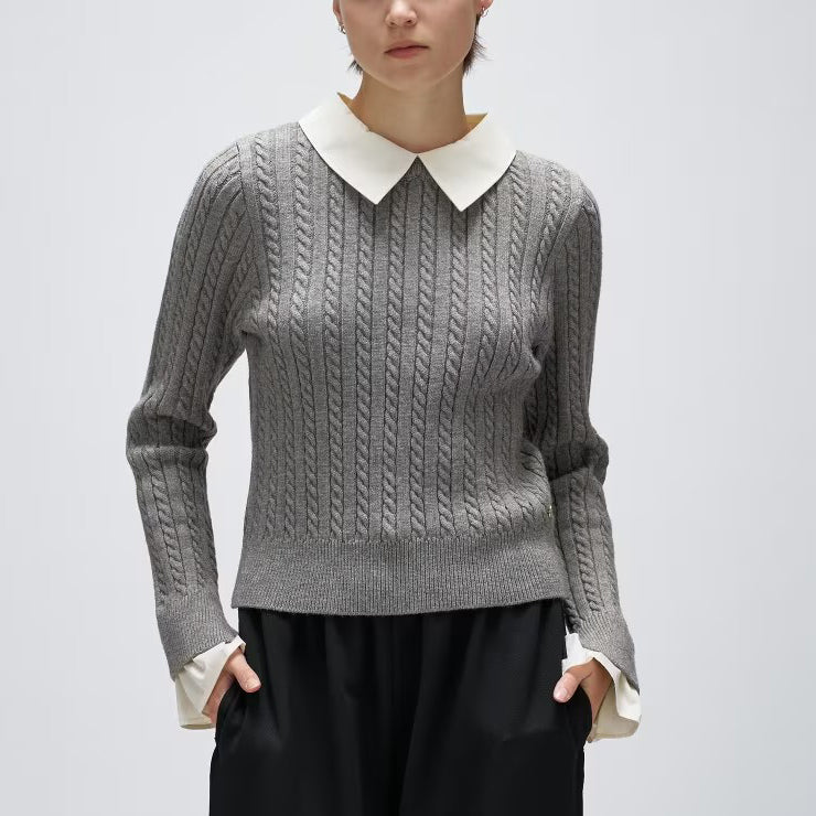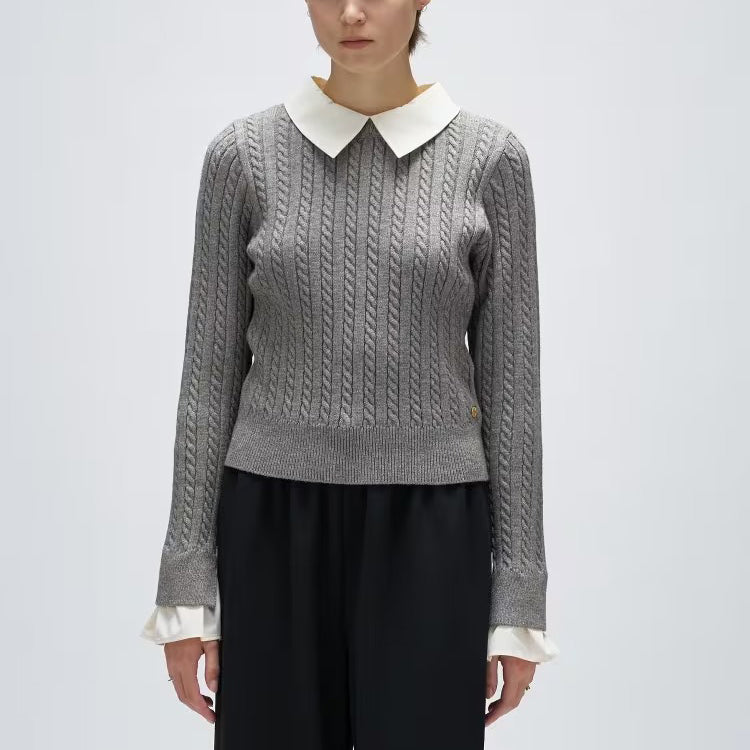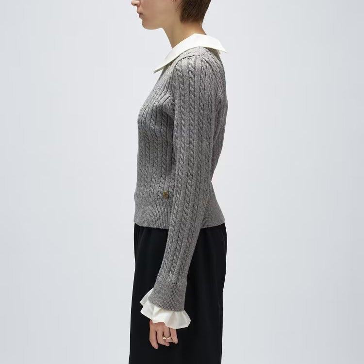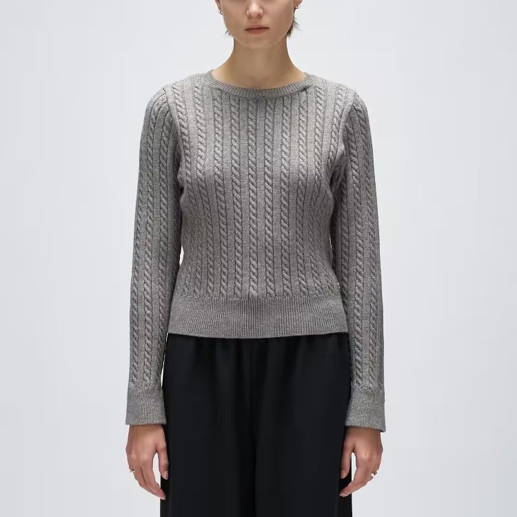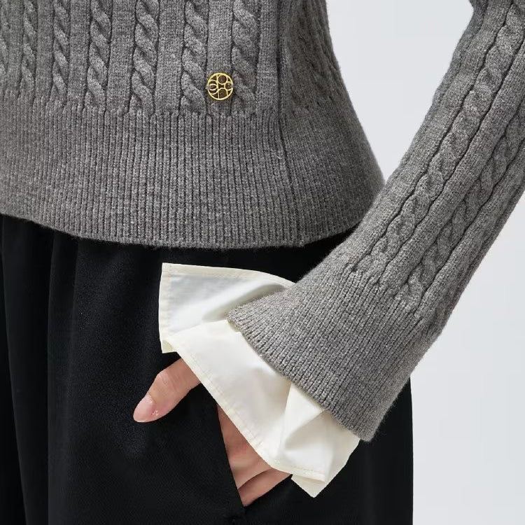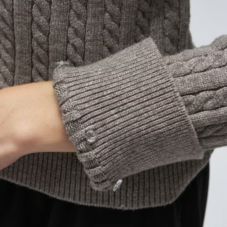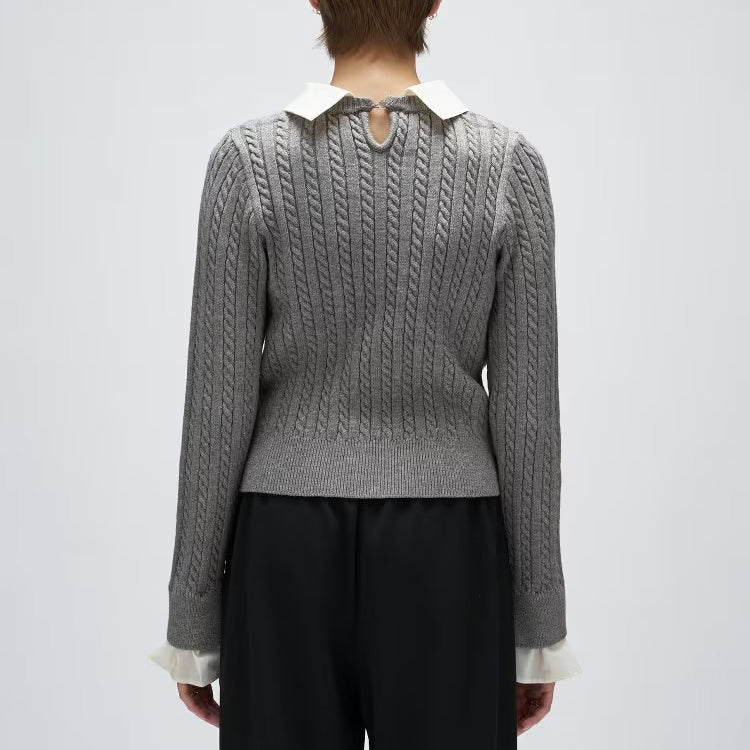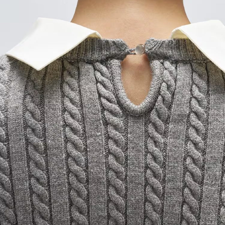 2WAY雙色細麻花針織上衣 - 灰|cloenc