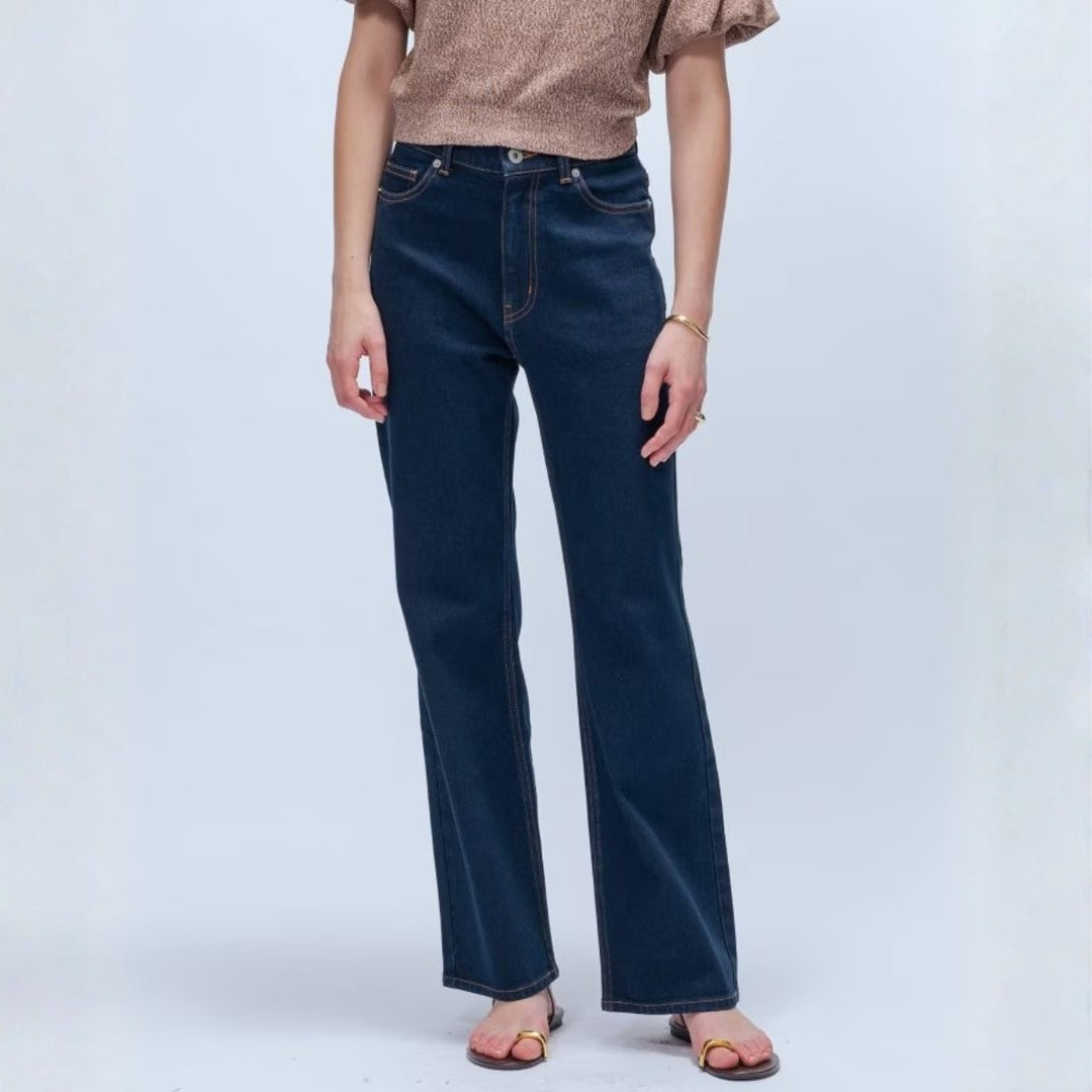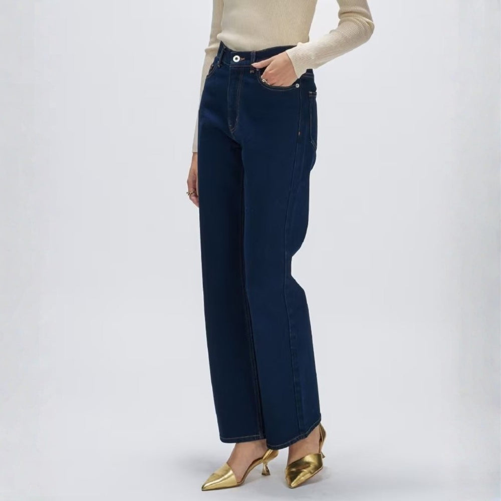 簡約彈性單寧喇叭褲 - 深藍|cloenc