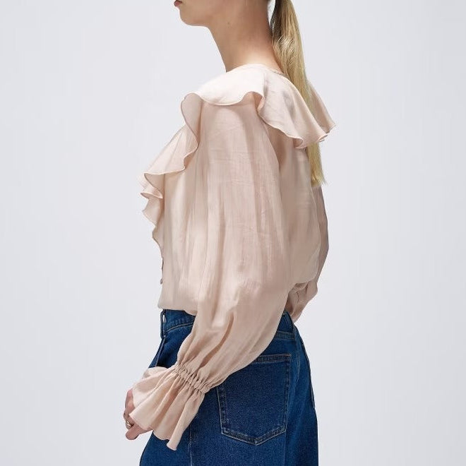 柔美荷葉V領襯衫 - 粉膚|cloenc
