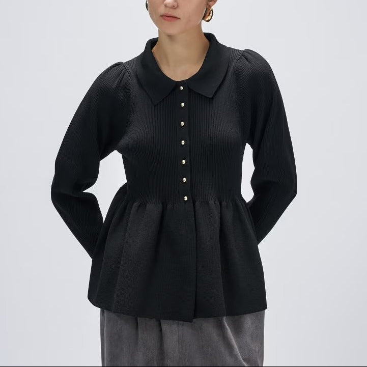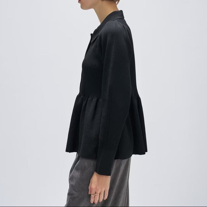 荷葉擺立體袖針織上衣 - 黑|cloenc
