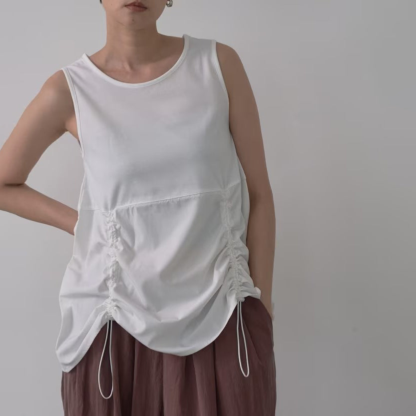 織紋抓皺荷葉下擺背心上衣|ANANA